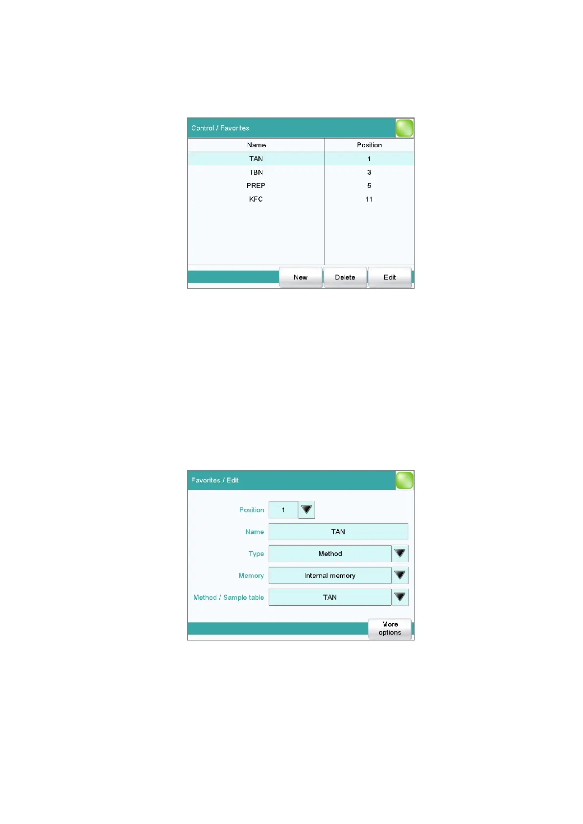 Add a new favorite to the list, see following chapter.