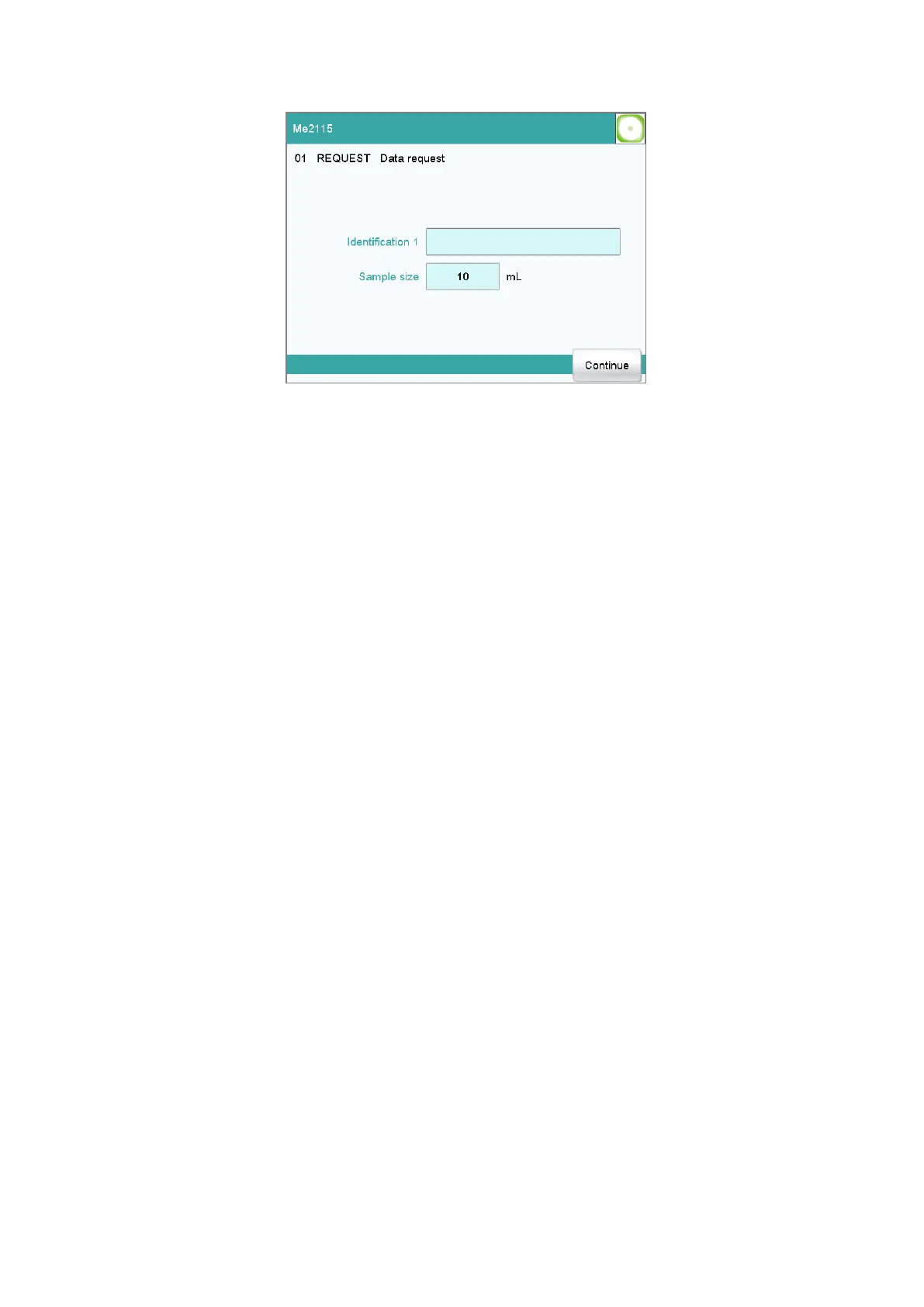 entering of the sample data is confirmed with [Continue], even if the