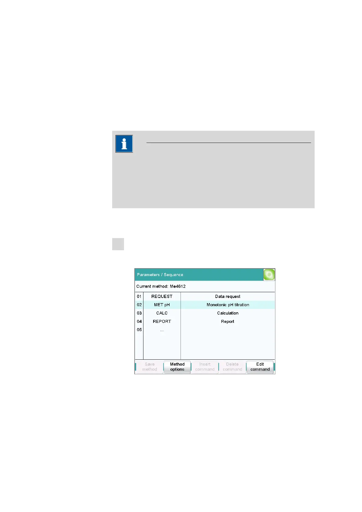 ■ Select the desired method command.
