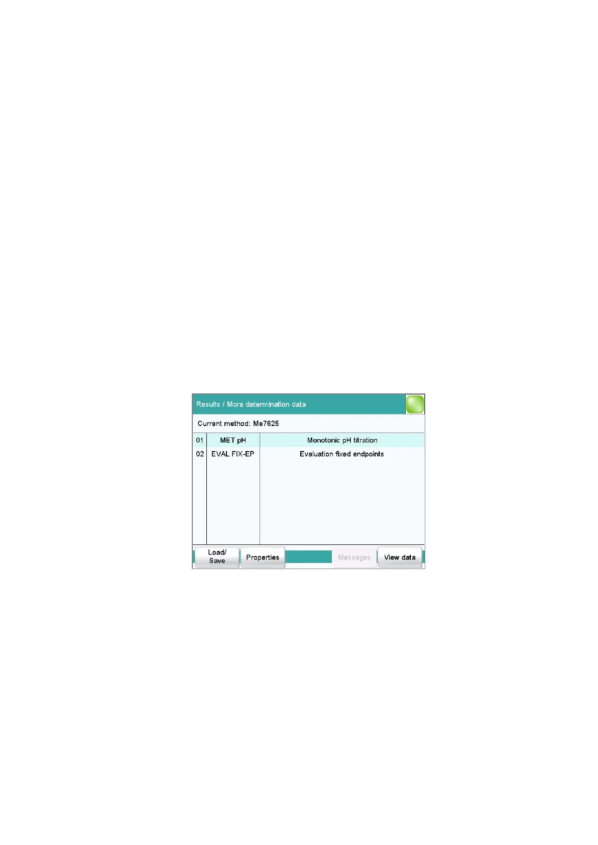 Display the properties of the current determination (see chapter 24.4,