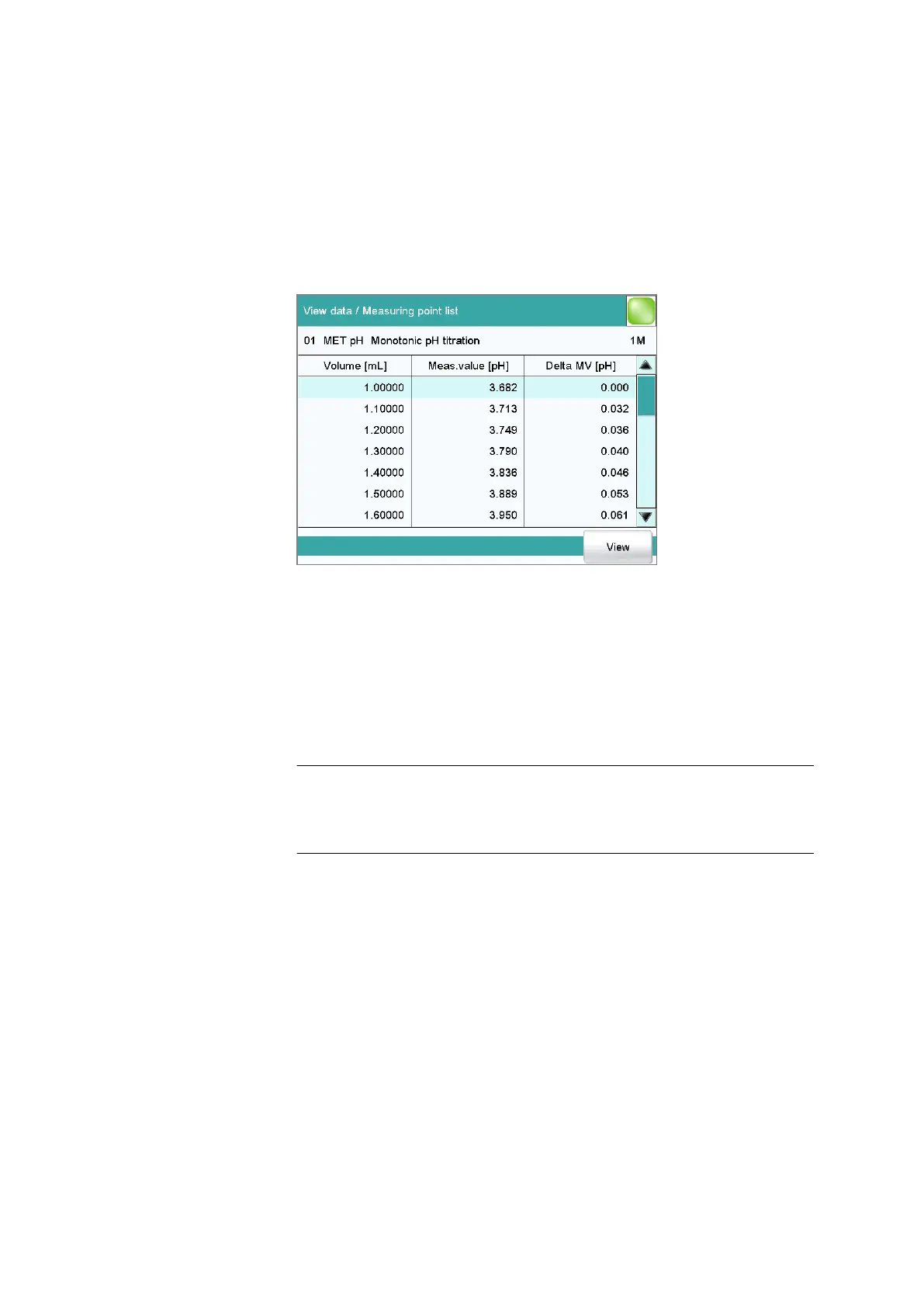 The individual measured values are listed in the View data / Measuring