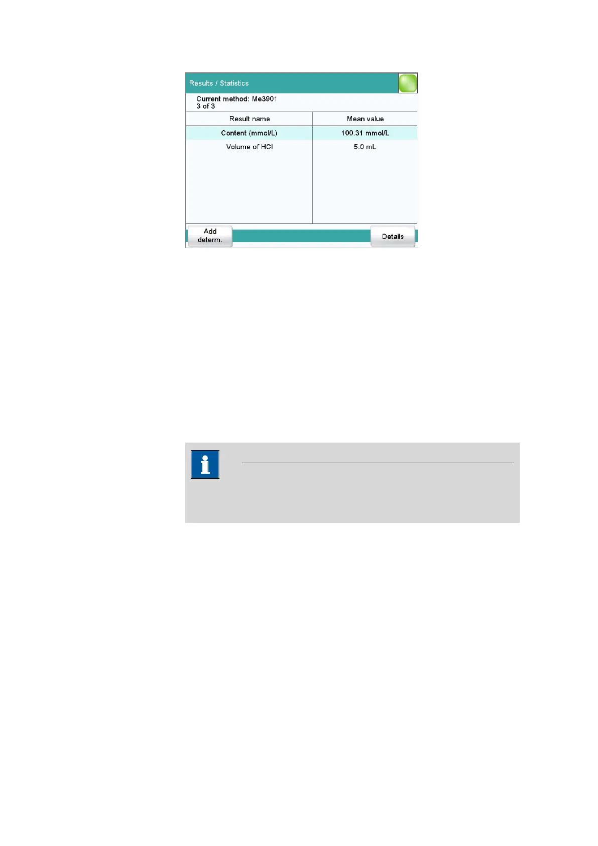 In this dialog, the method with which the determination was carried out is
