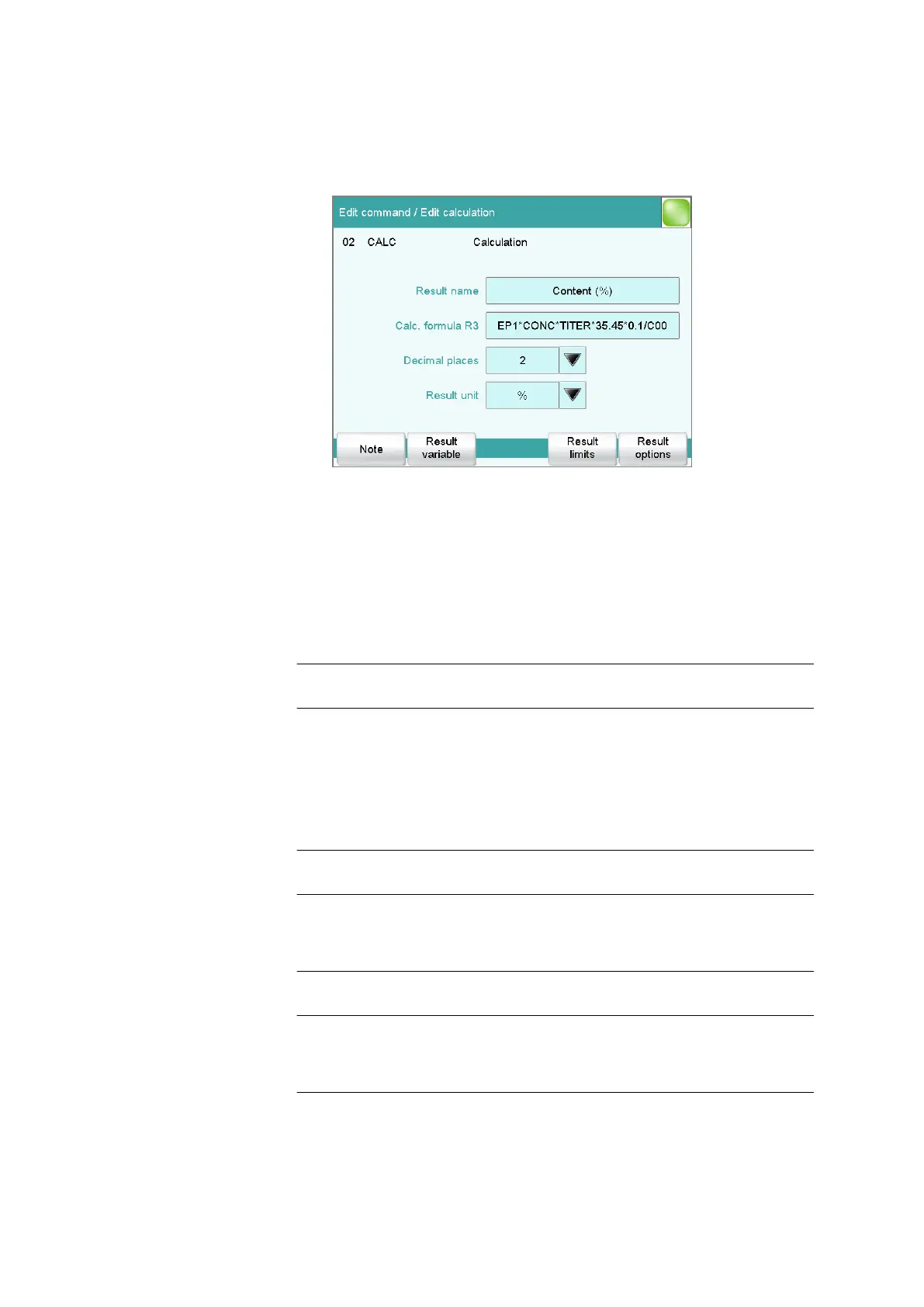 Shows the calculation formula. A special editor is opened for the defini-