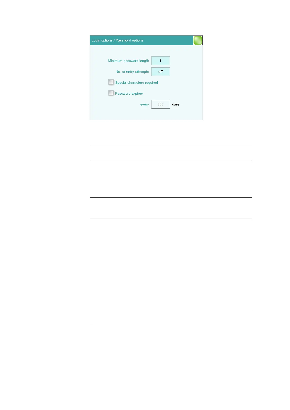 If this option is activated, then the password must contain one of the fol-
