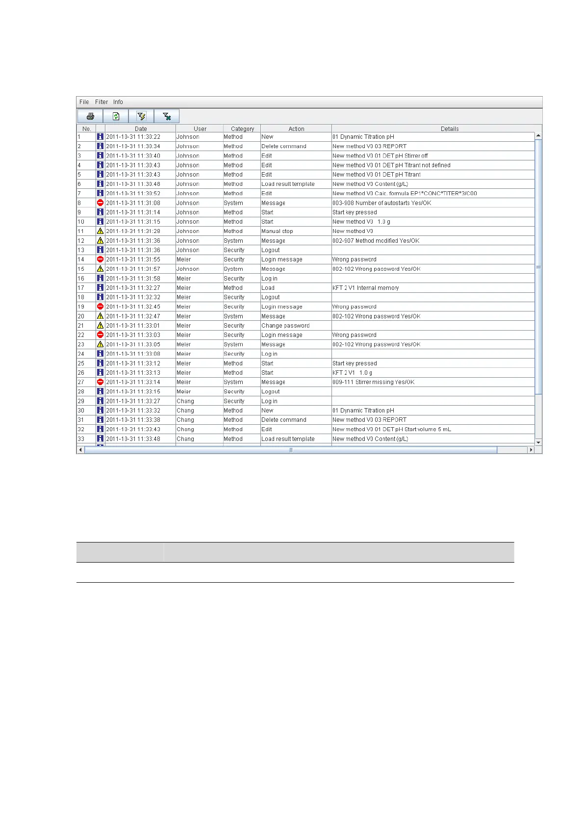 Metrohm 900 - Contents of the Audit Trail