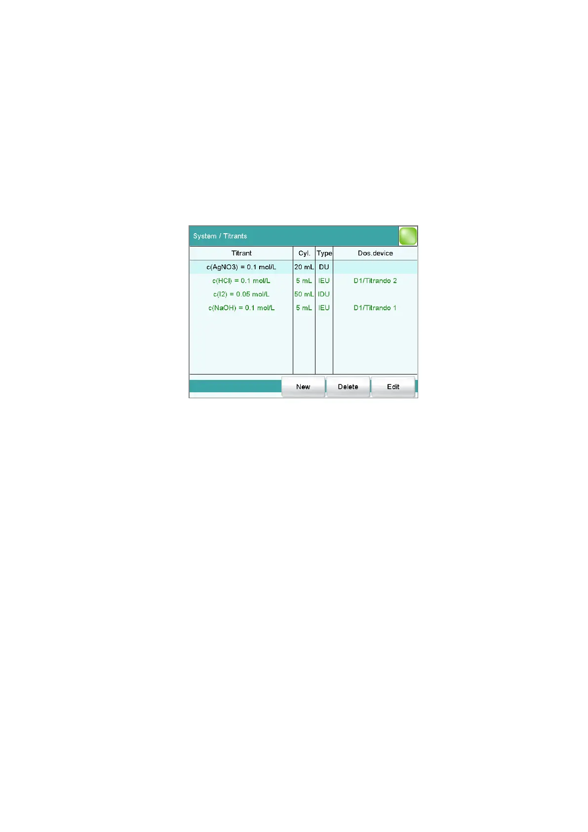 Main dialog: System ▶ Titrants