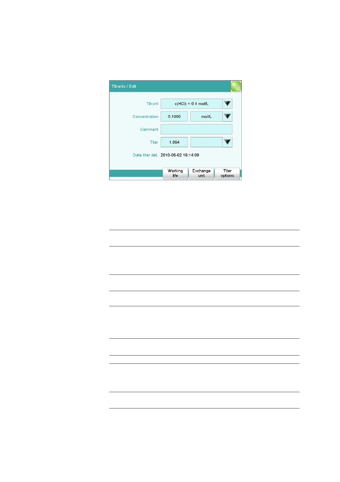 Titrant list: Titrants ▶ New / Edit