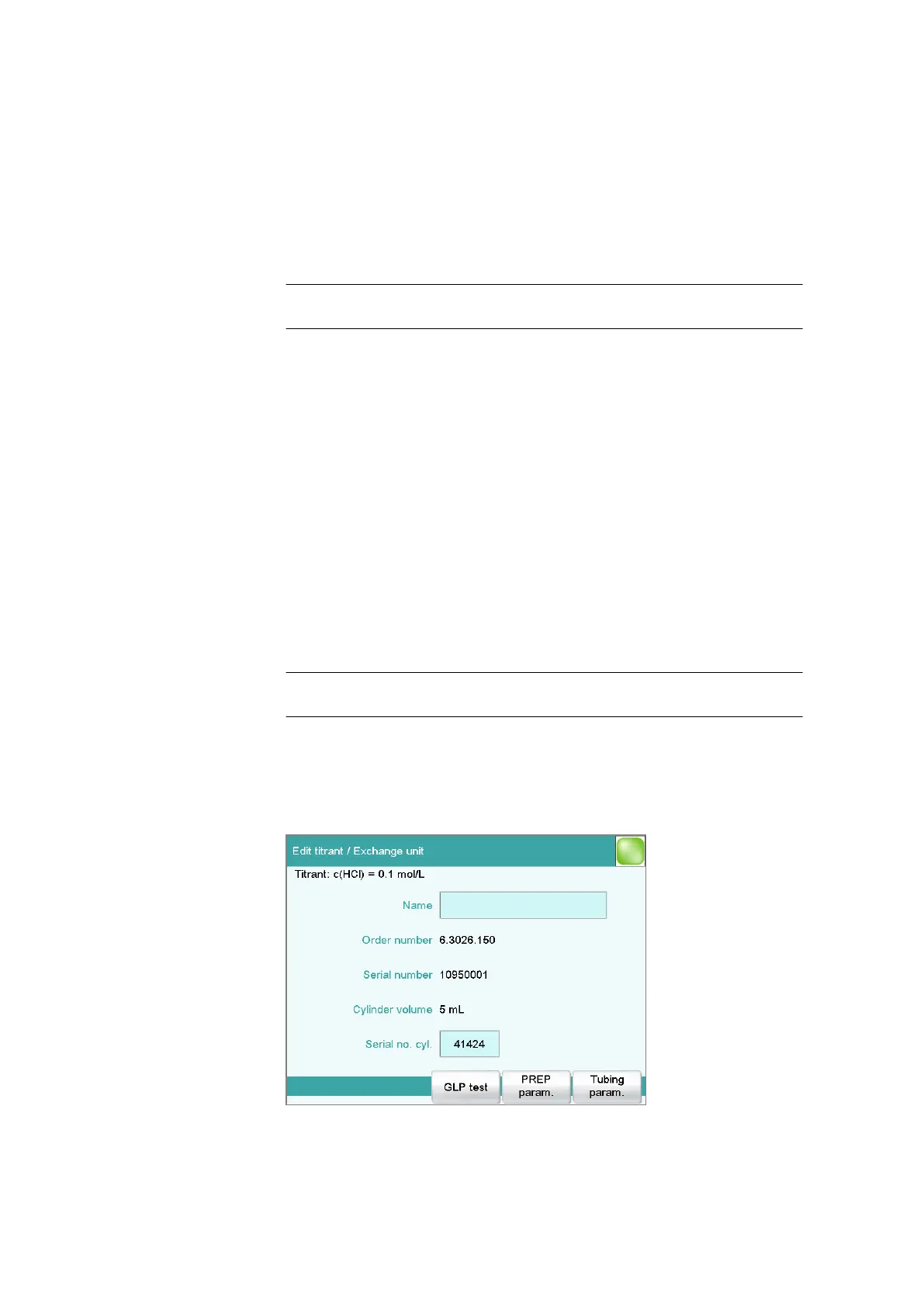 Titrant: Edit ▶ Dosing unit ▶ Valve disk