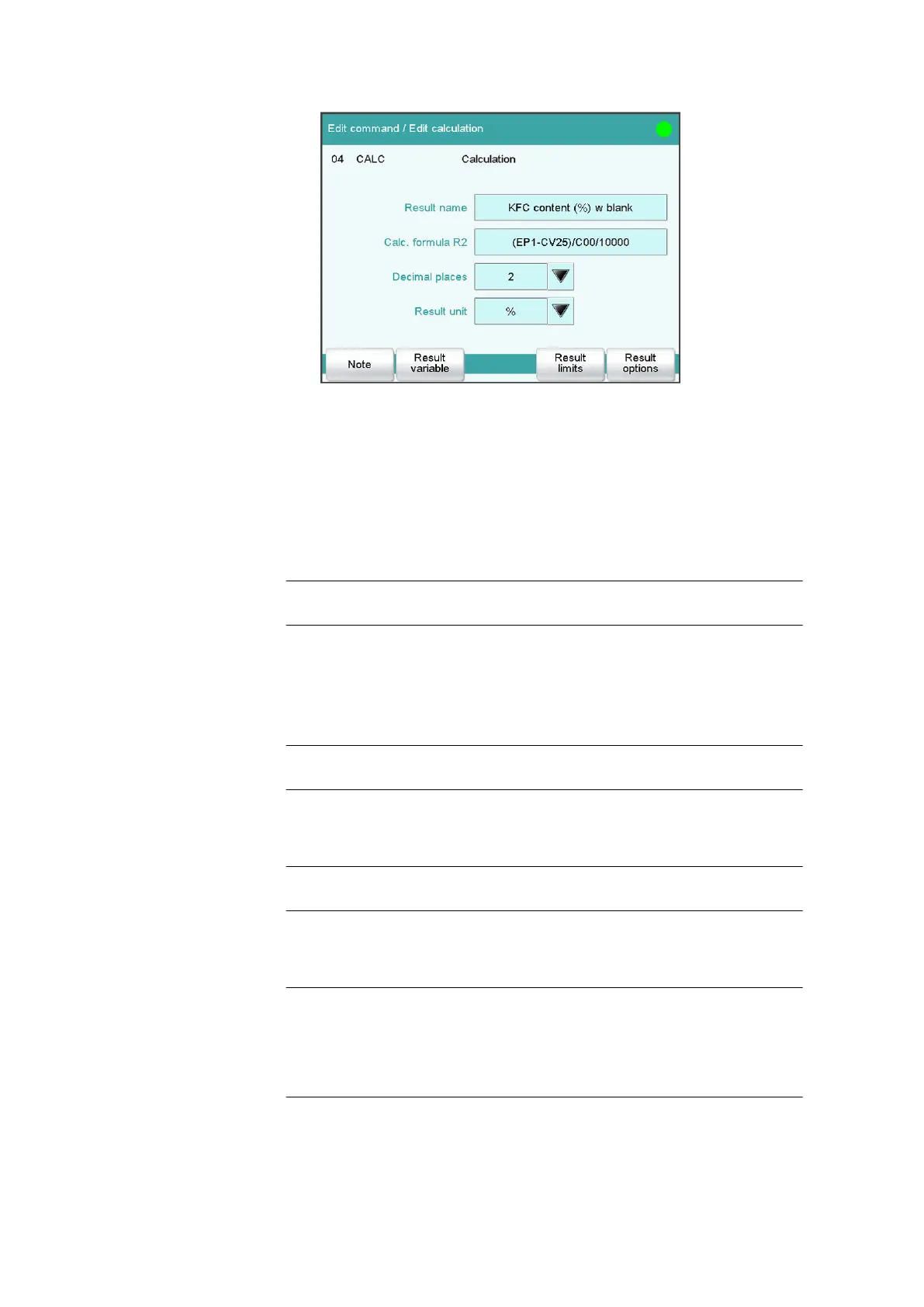 Shows the calculation formula. A special editor is opened for the defini-