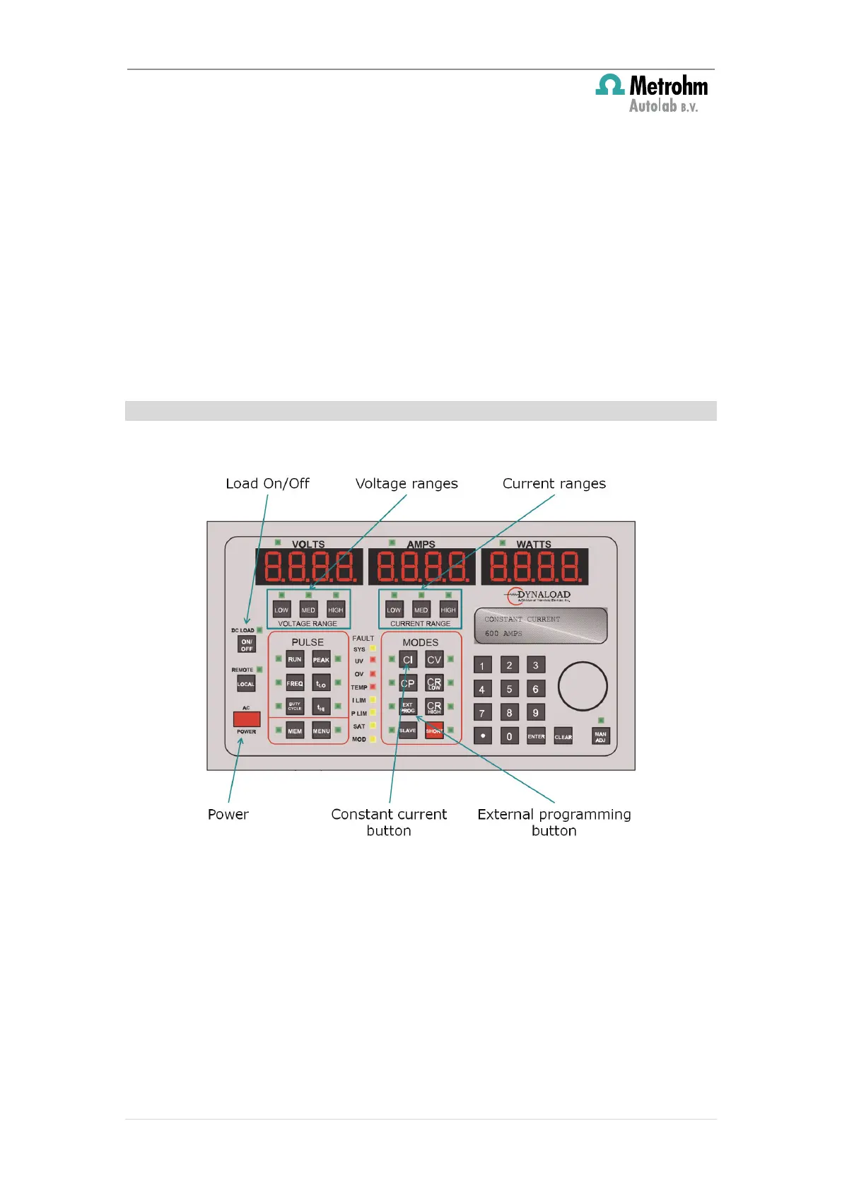 4. Activate the external programming of the load by pressing the EXT PROG