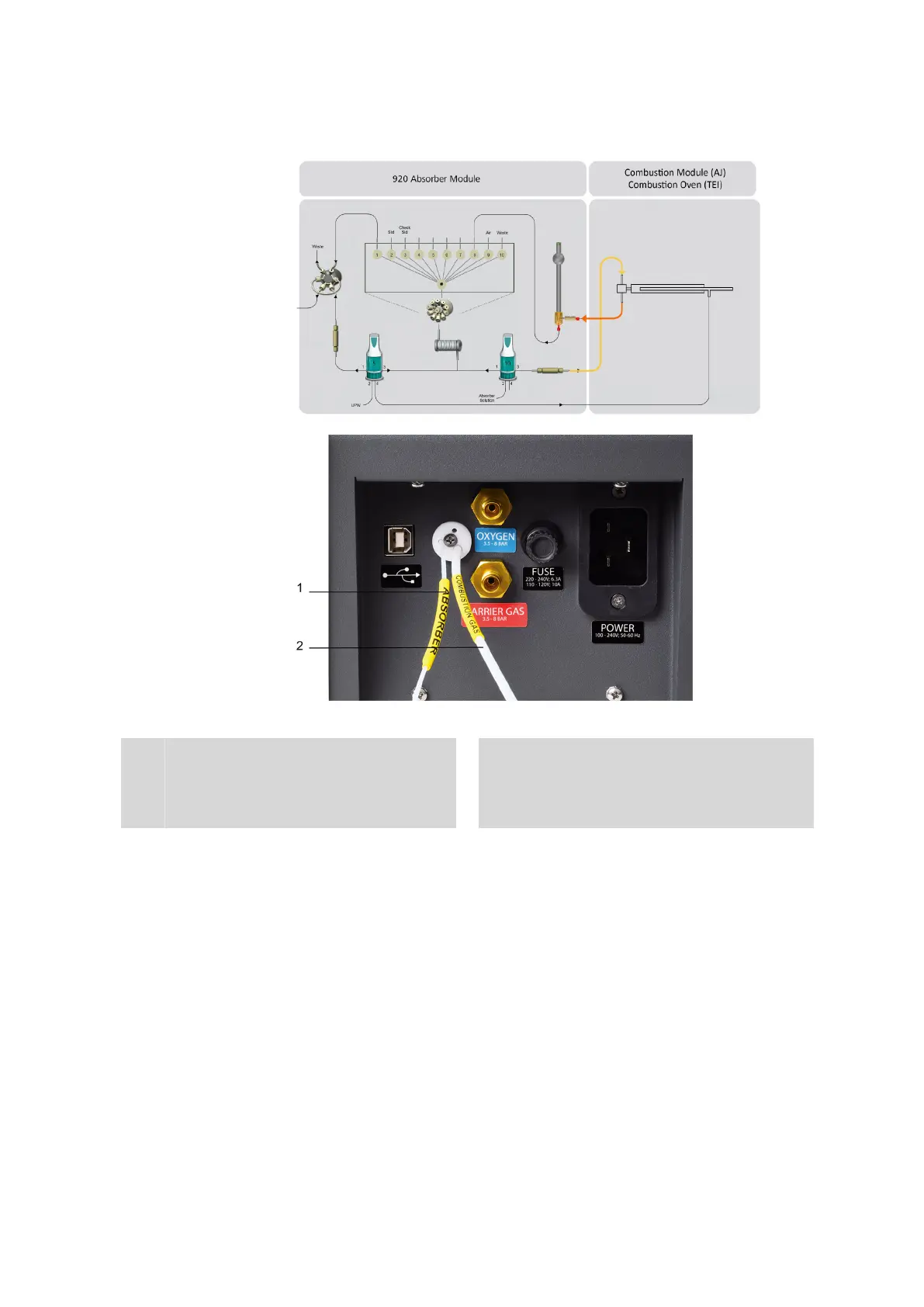 Combustion Oven (TEI): A capillary is routed out on the right side of the