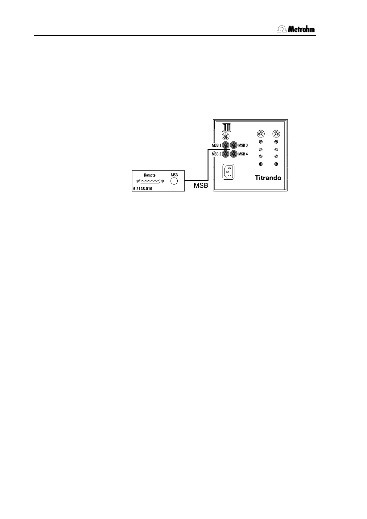 Connect the remote box to an MSB connection on the Titrando in