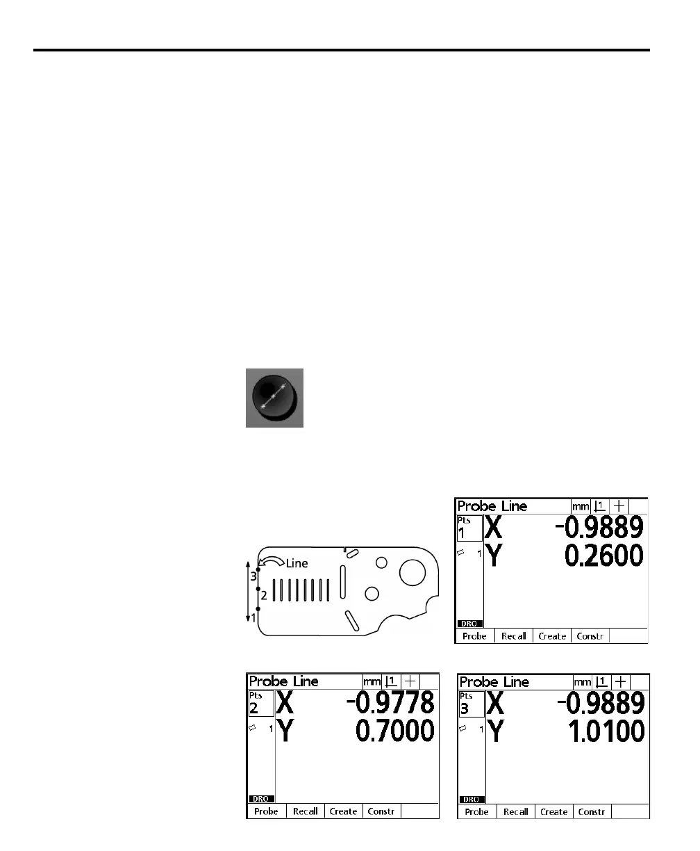 Probe a minimum of two points along the line as shown. Press the enter key after