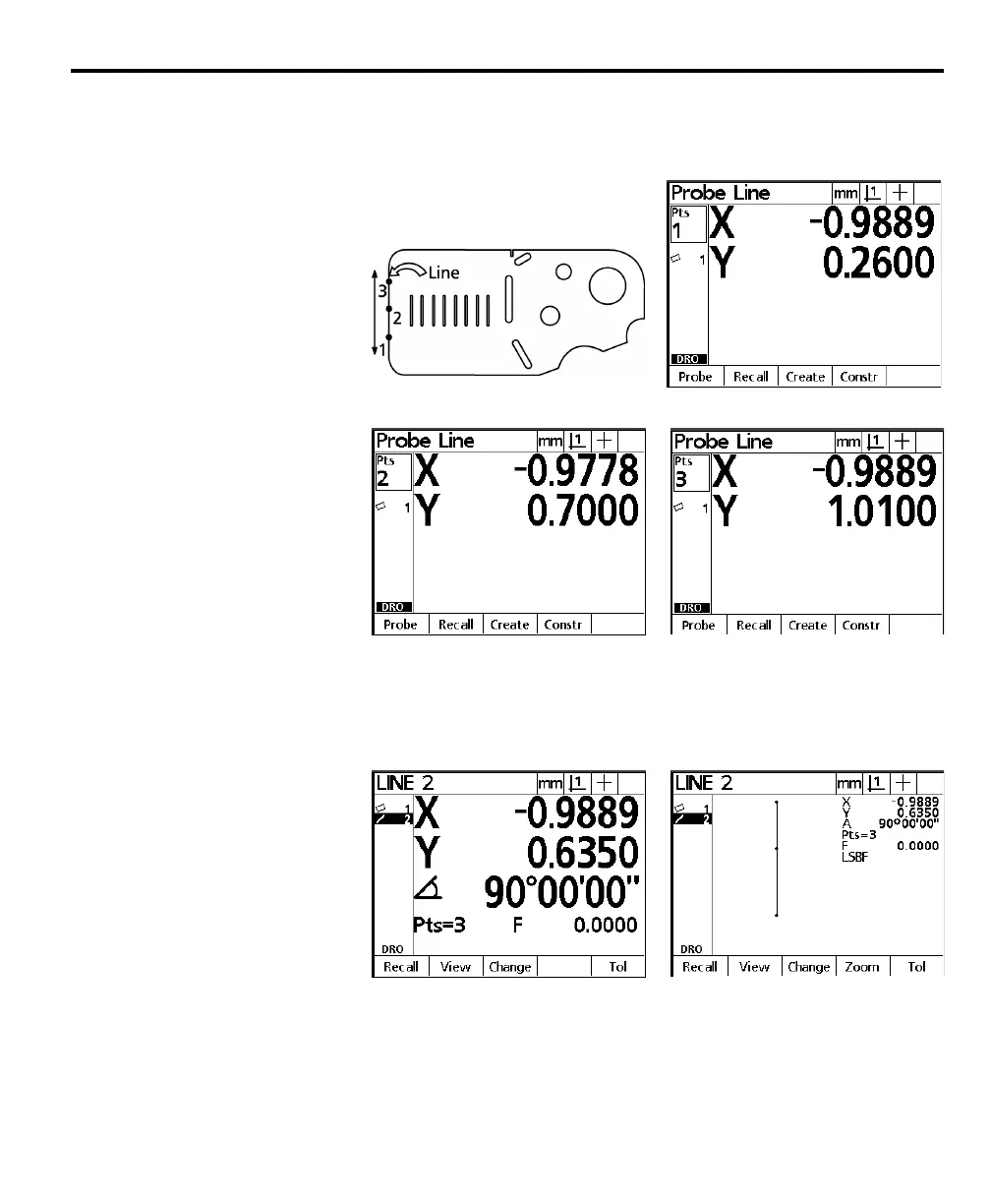 Probe a minimum of two points along the line as shown. Press the enter key after