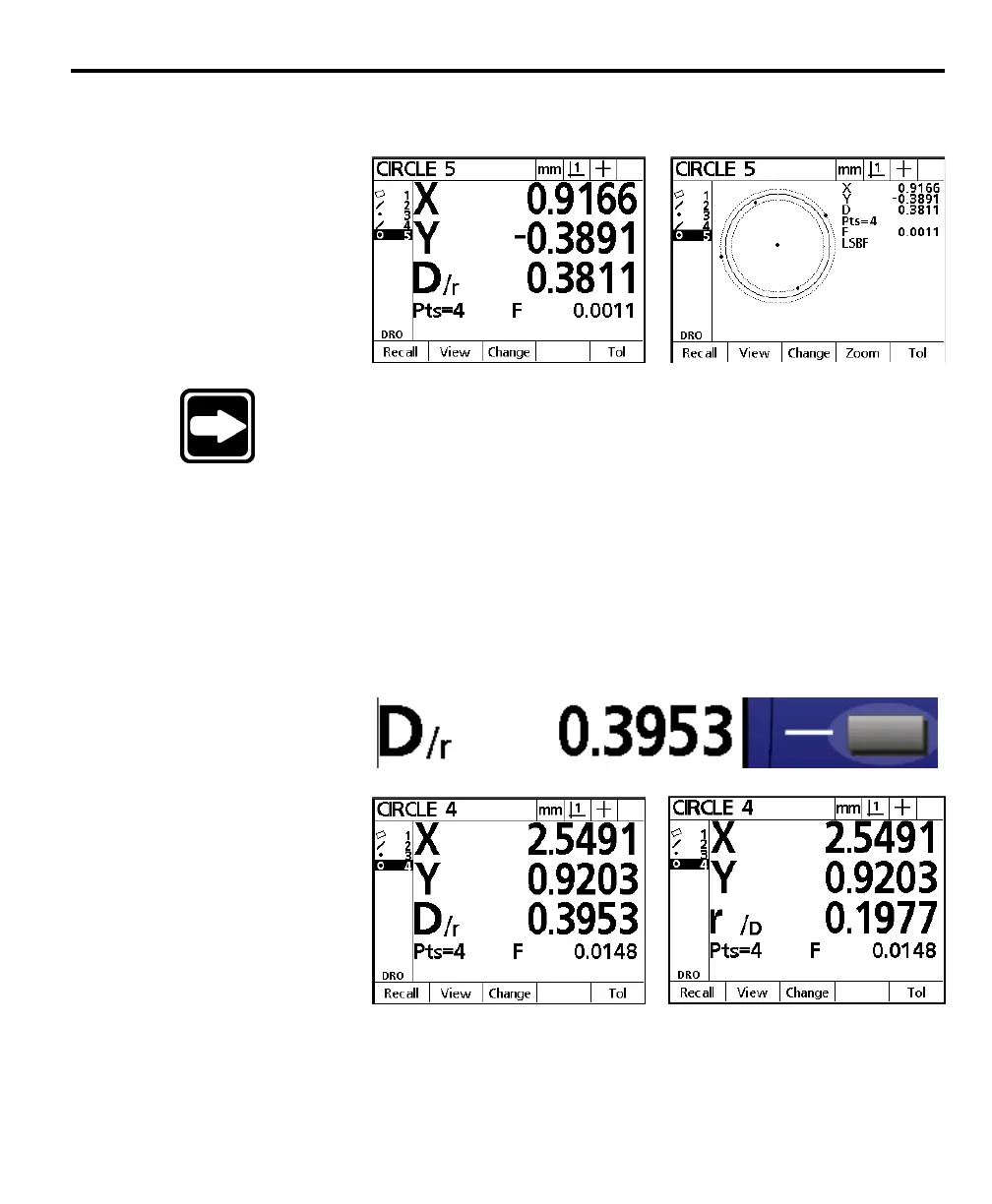 Press the view soft key for a graphic representation of the circle feature.