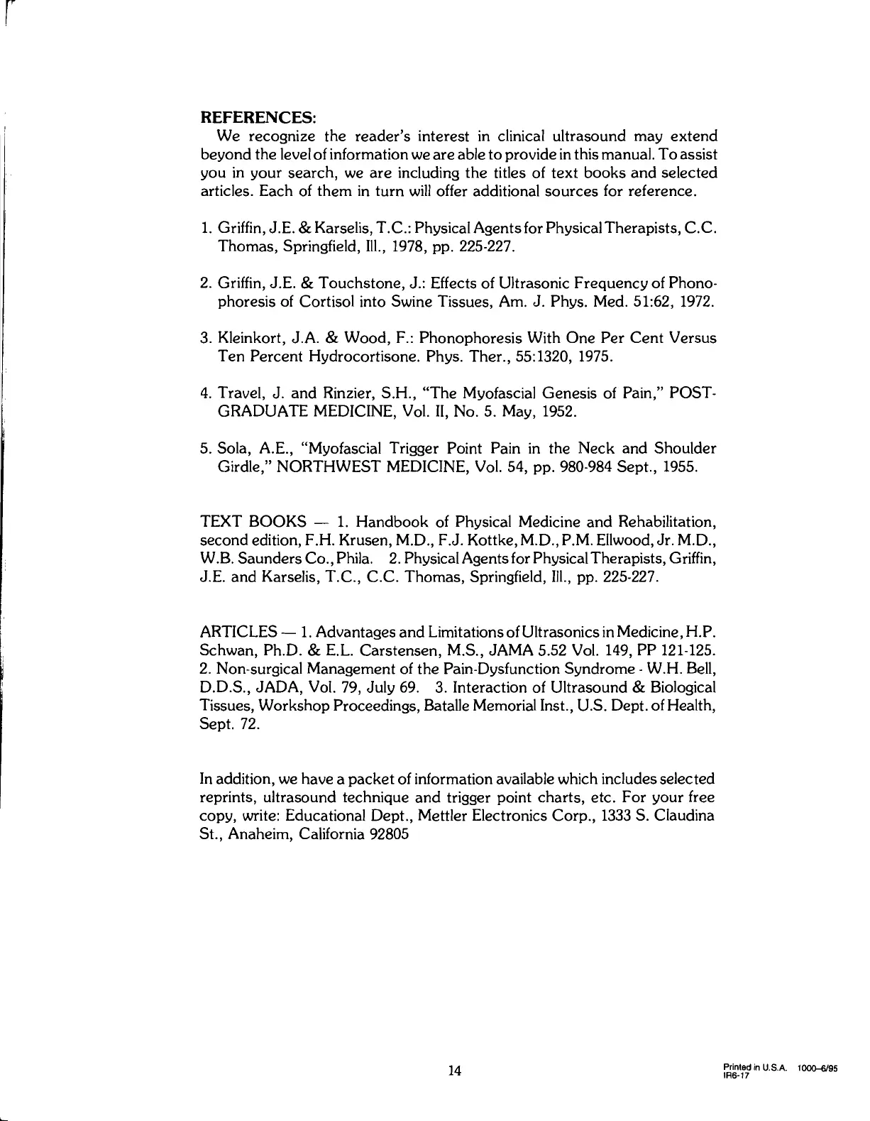 Co., Phila. 2. Physical Agents for Physical Therapists, Griffin,