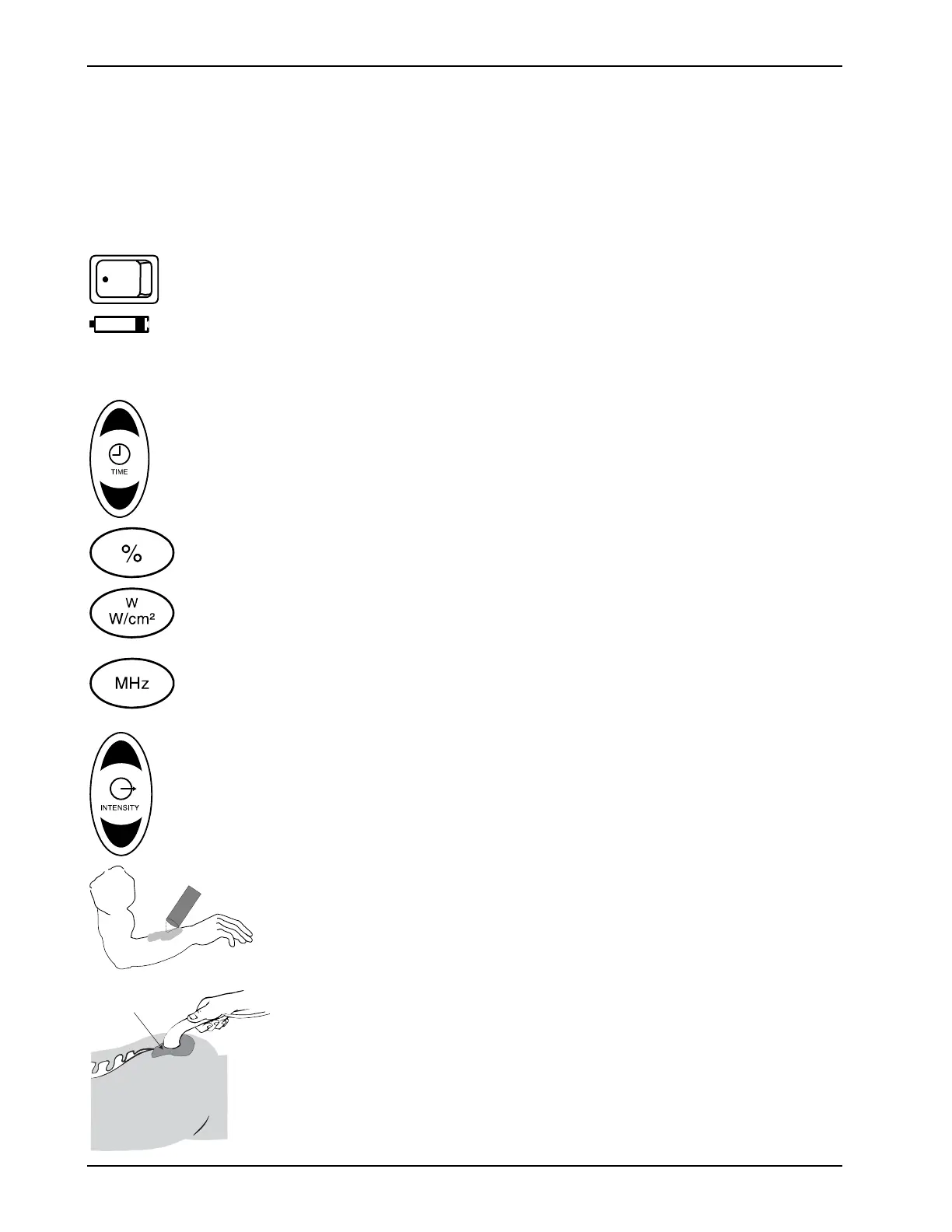 Holding an arrow down will rapidly raise or lower the ultrasound power.