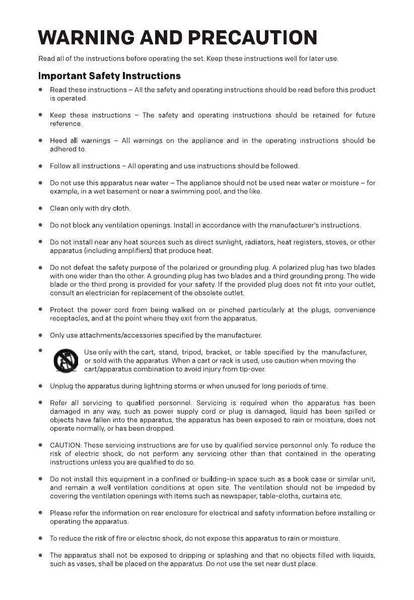 Metz 65MXD9500A - Warning and Precaution; Important Safety Instructions