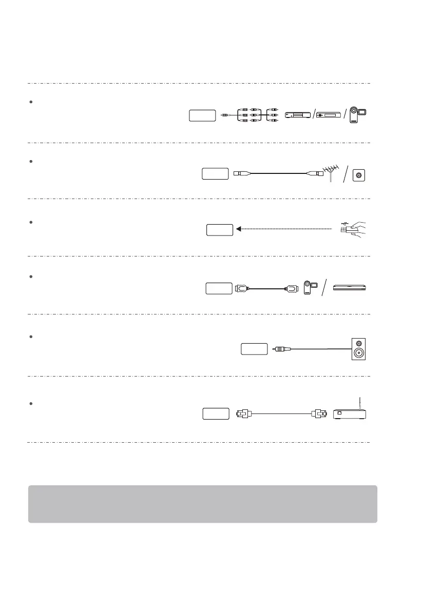 3). External equipments and cables shown herein are not supplied with the TV.