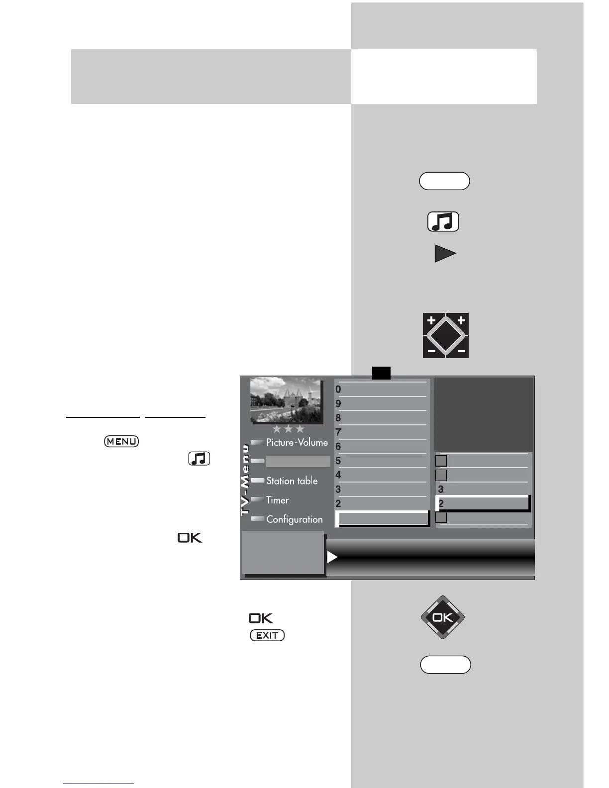 • Exit the “TV Menu“ by pressing .