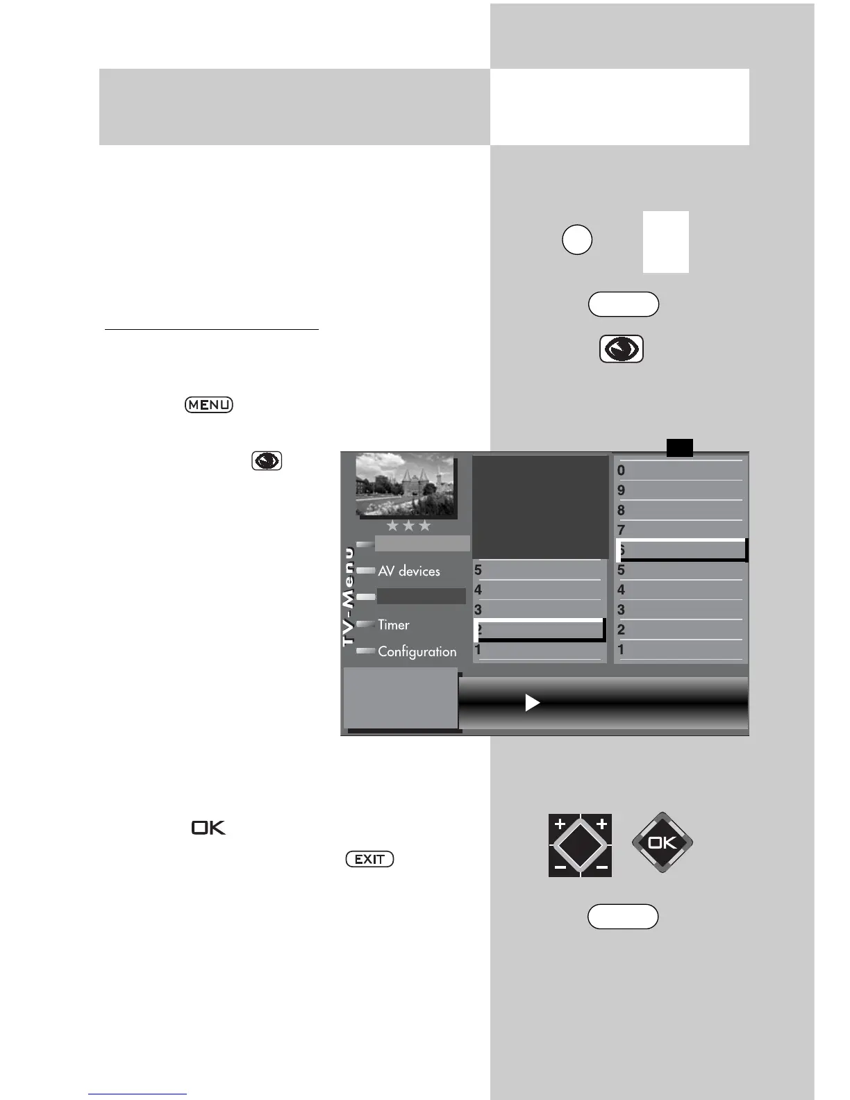 • Clear the “TV menu” with the button.