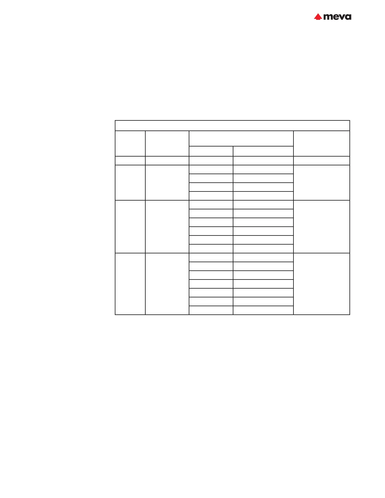 Tension value in (parentheses) is MevaLite multi function profile pullout working load limit.