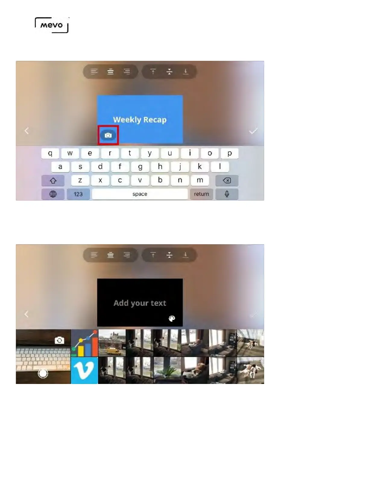 You can add text to your image by tapping Add your text. You can change the text color to black or