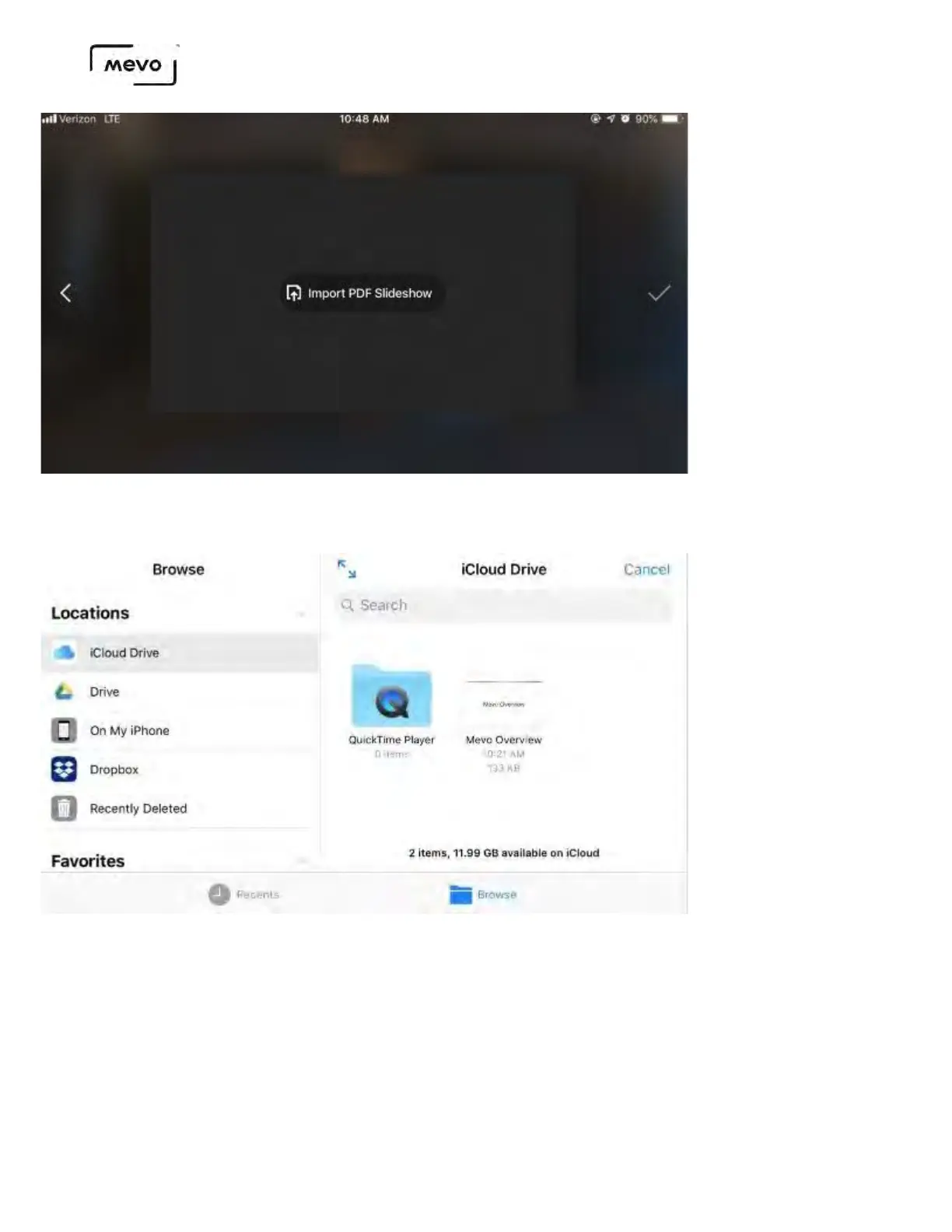 Mevo will open the Files explorer. Find your slideshow PDF and tap it to select it. A preview will load in