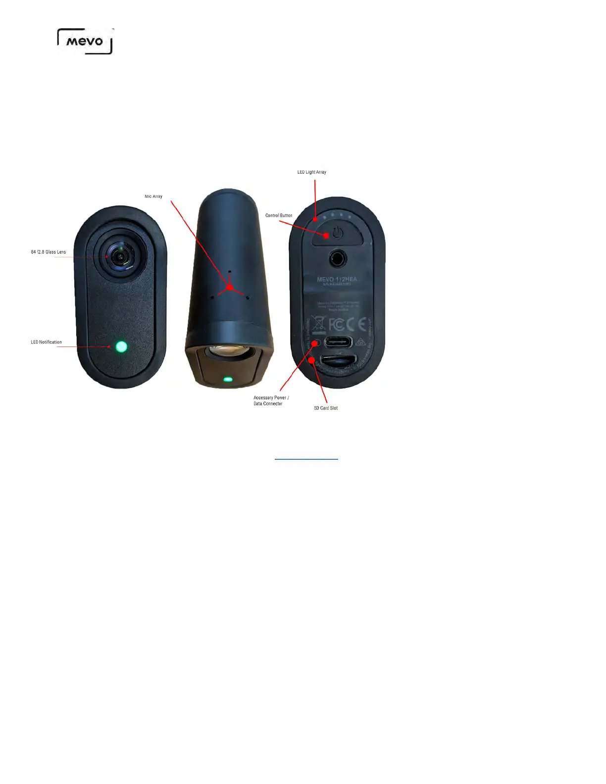 Below is a diagram detailing the features on the physical Mevo camera.
