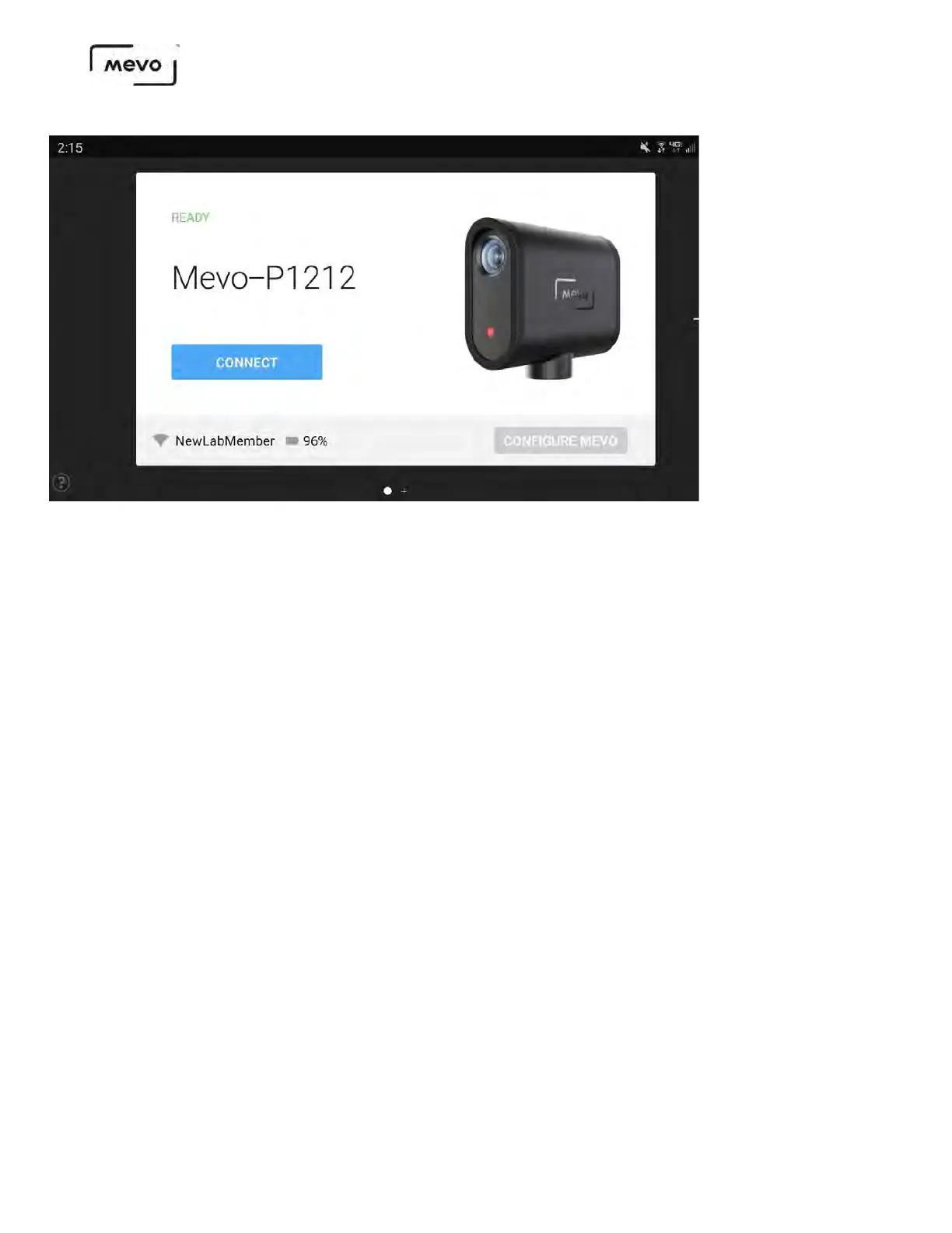 Launch the Mevo app and tap the blue Connect button.