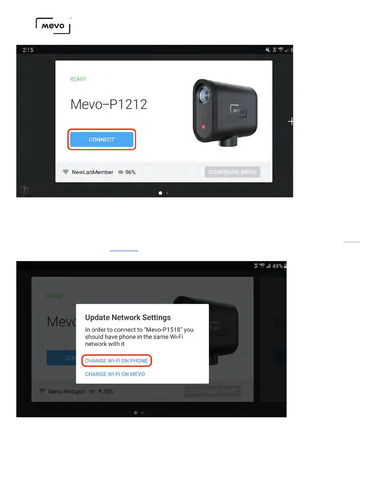 A pop-up alert will appear prompting you to update your network settings. To connect to the Mevo Start