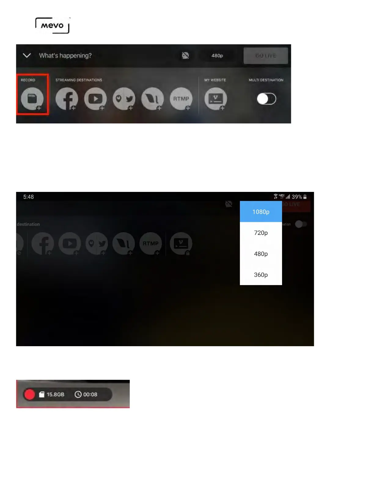 At the top of the screen, give your recording a name and select a quality. The bottom of the screen