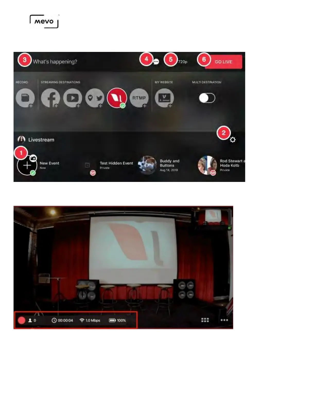 Tap small red dot on the bottom left corner to see more information about your stream, including