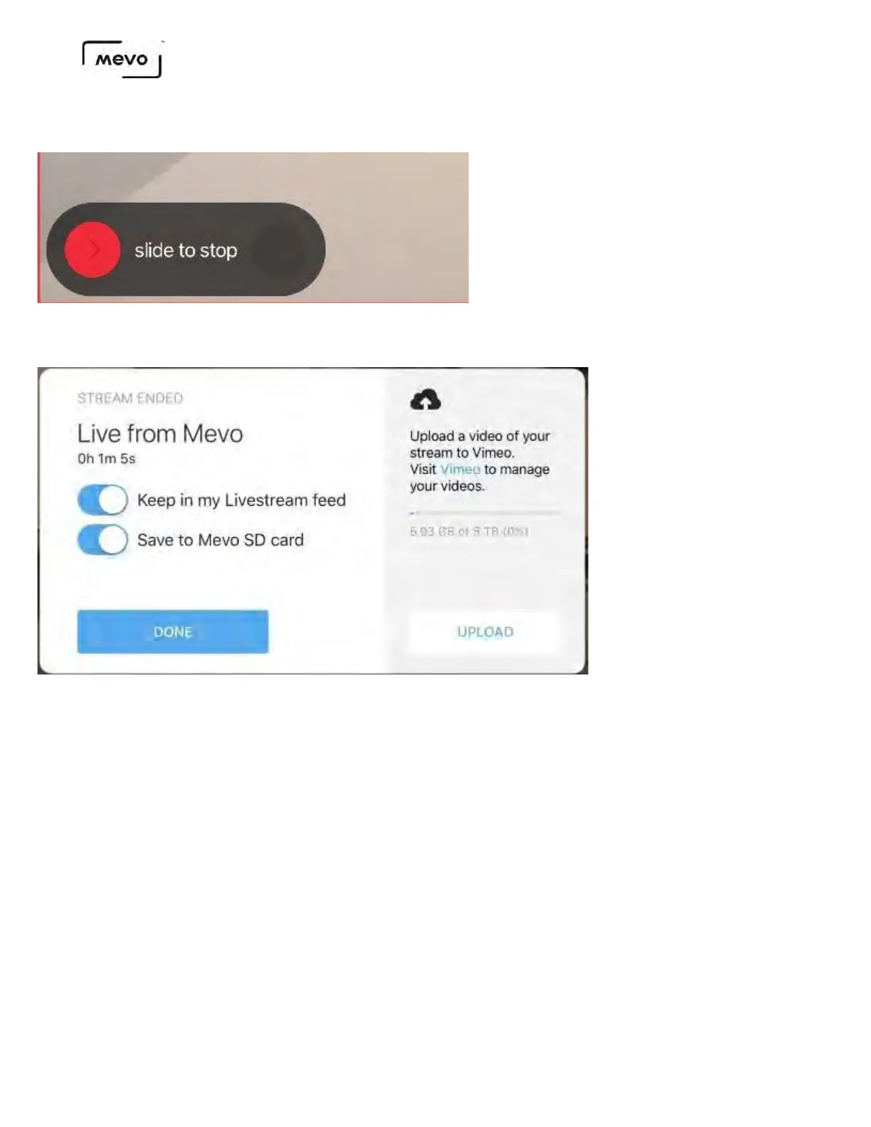 upload to Vimeo. Then tap Done.