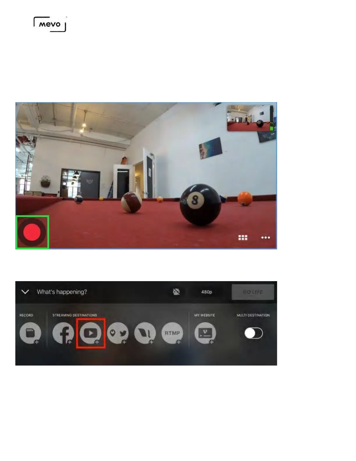 Mevo producers can choose YouTube as a streaming destination for their events, either to a YouTube event