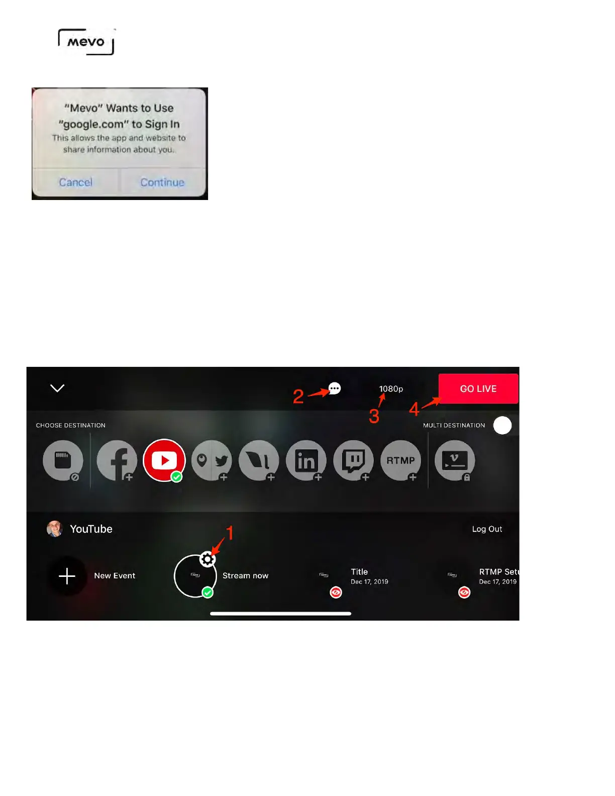 channel directly from the Mevo app, select Stream Now to stream directly to your channel page rather