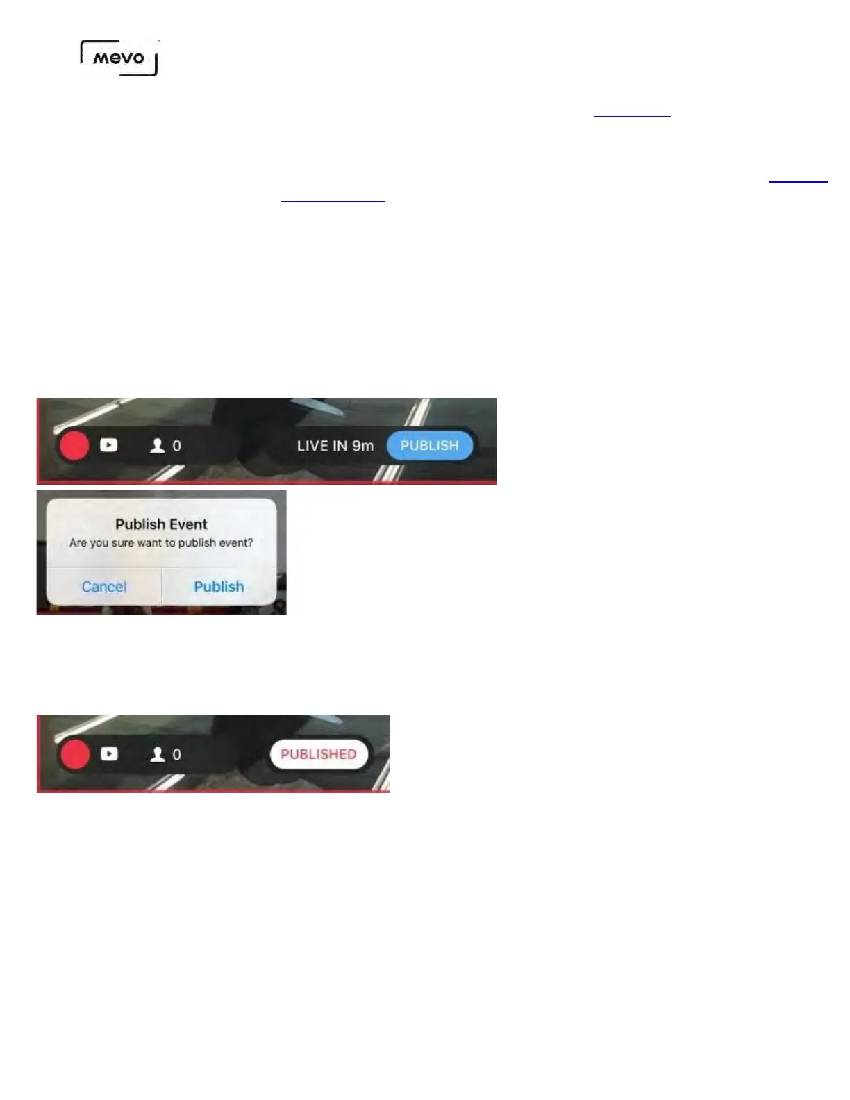 Mevo Start will start sending the stream to YouTube. If you selected Stream Now, your channel is
