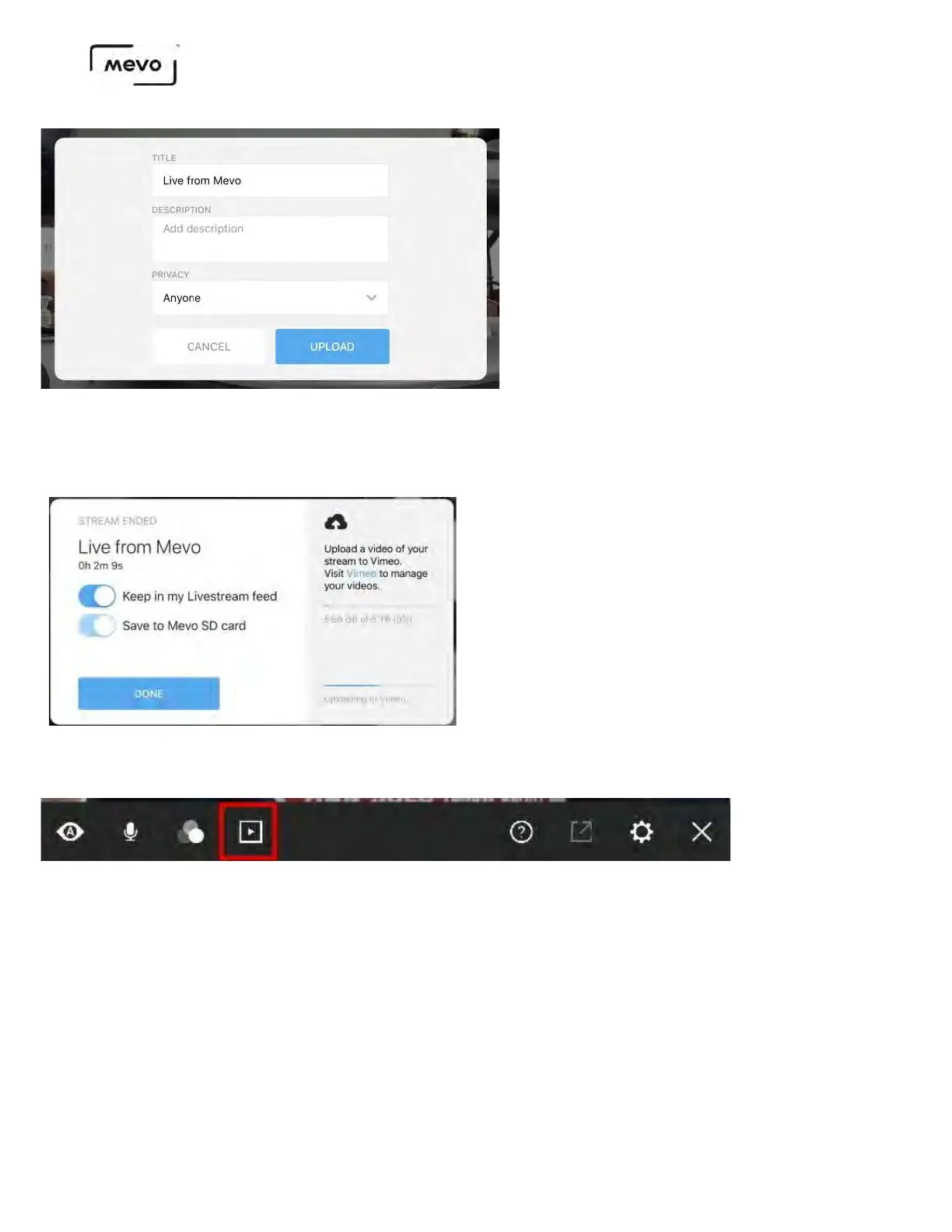 It will queue up in Vimeo and you can see its progress in the Mevo app. When it has finished, you can