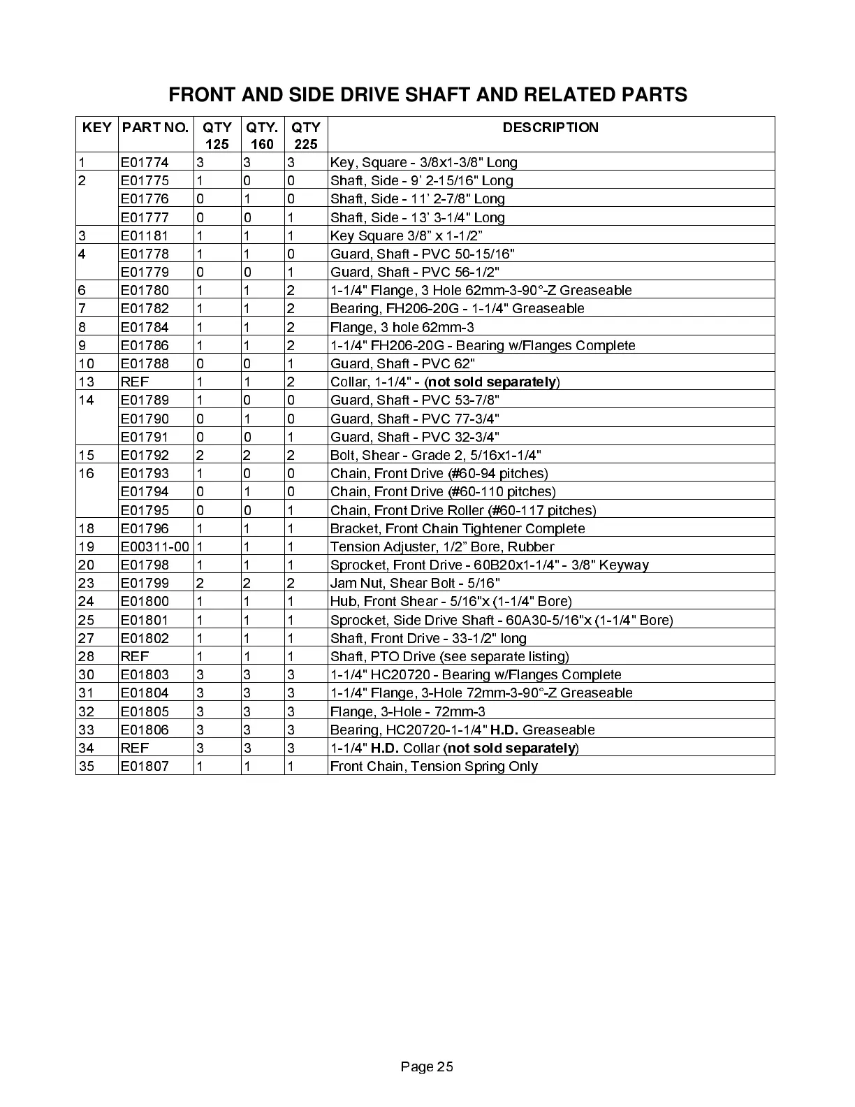 25 E01801 1 1 1 Sprocket, Side Drive Shaft - 60A30-5/16"x (1-1/4" Bore)