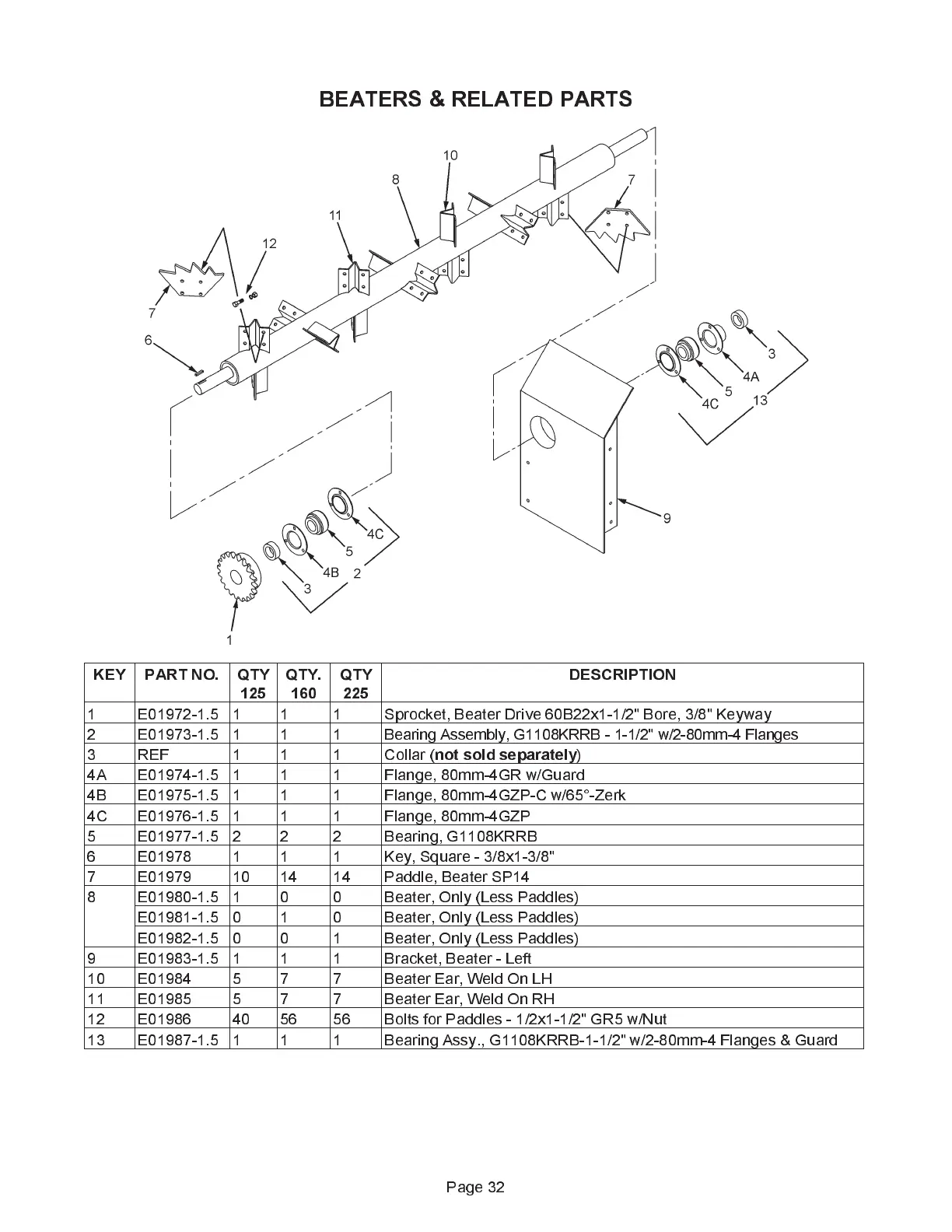 1 E01972-1.5 1 1 1 Sprocket, Beater Drive 60B22x1-1/2" Bore, 3/8" Keyway