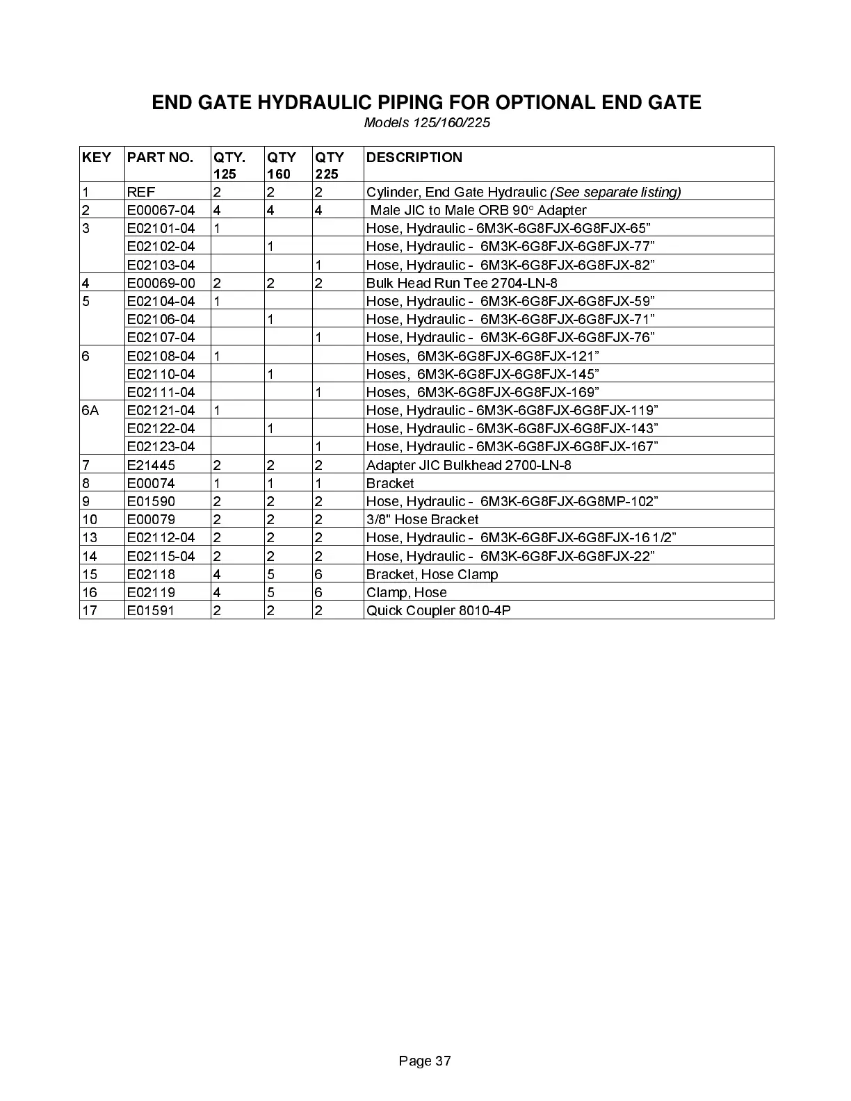 END GATE HYDRAULIC PIPING FOR OPTIONAL END GATE