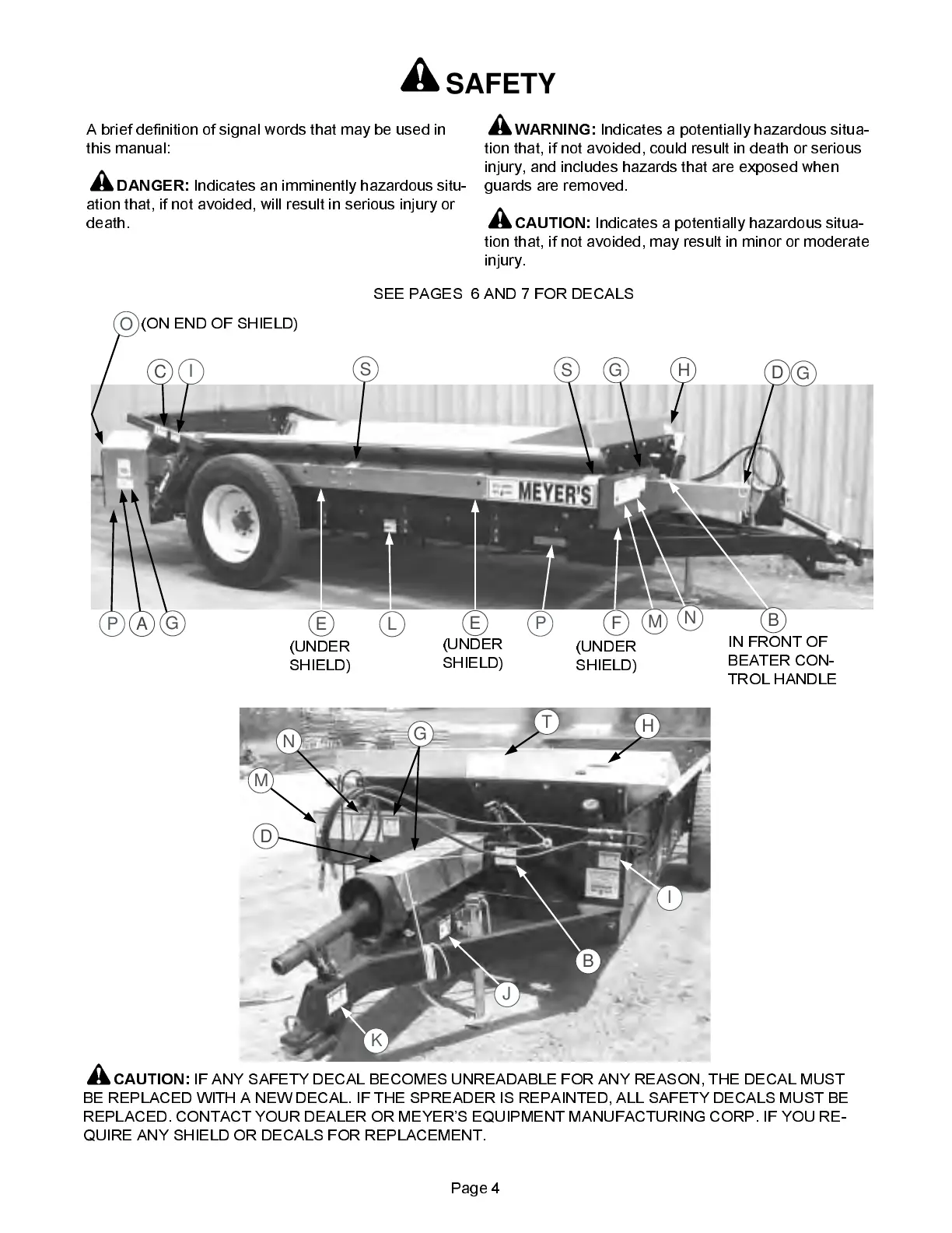 BE REPLACED WITH A NEW DECAL. IF THE SPREADER IS REPAINTED, ALL SAFETY DECALS MUST BE