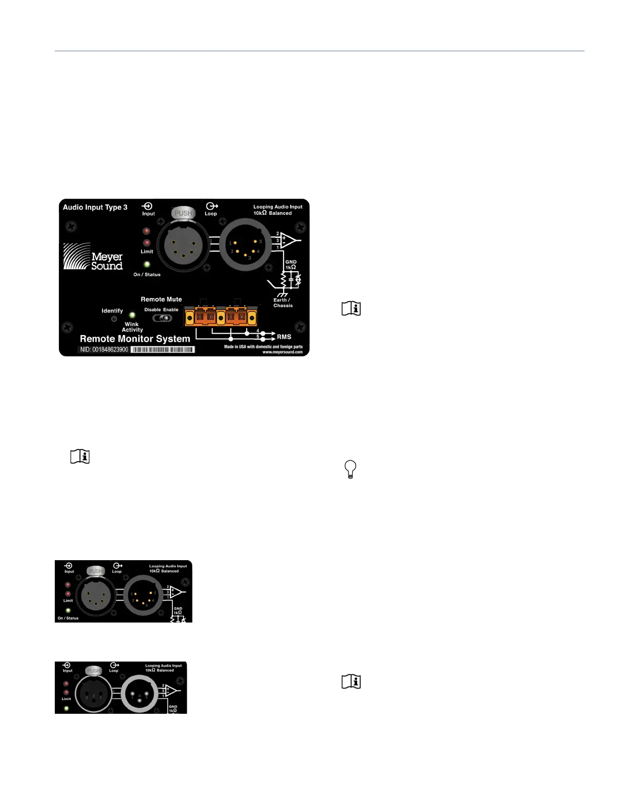 nectors for audio, Limit and On/Status LEDs, and RMS con-