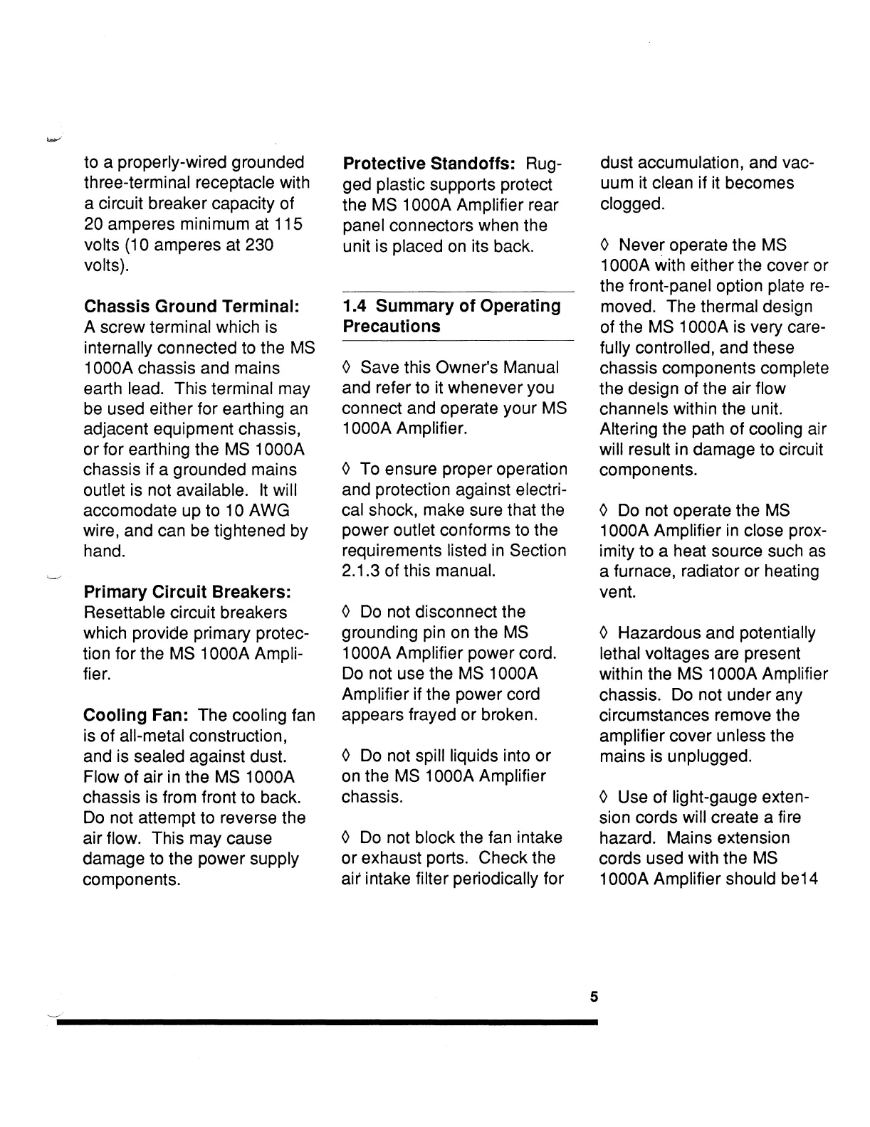 Meyer Sound MS 1000A - 1.4 Summary of Operating Precautions