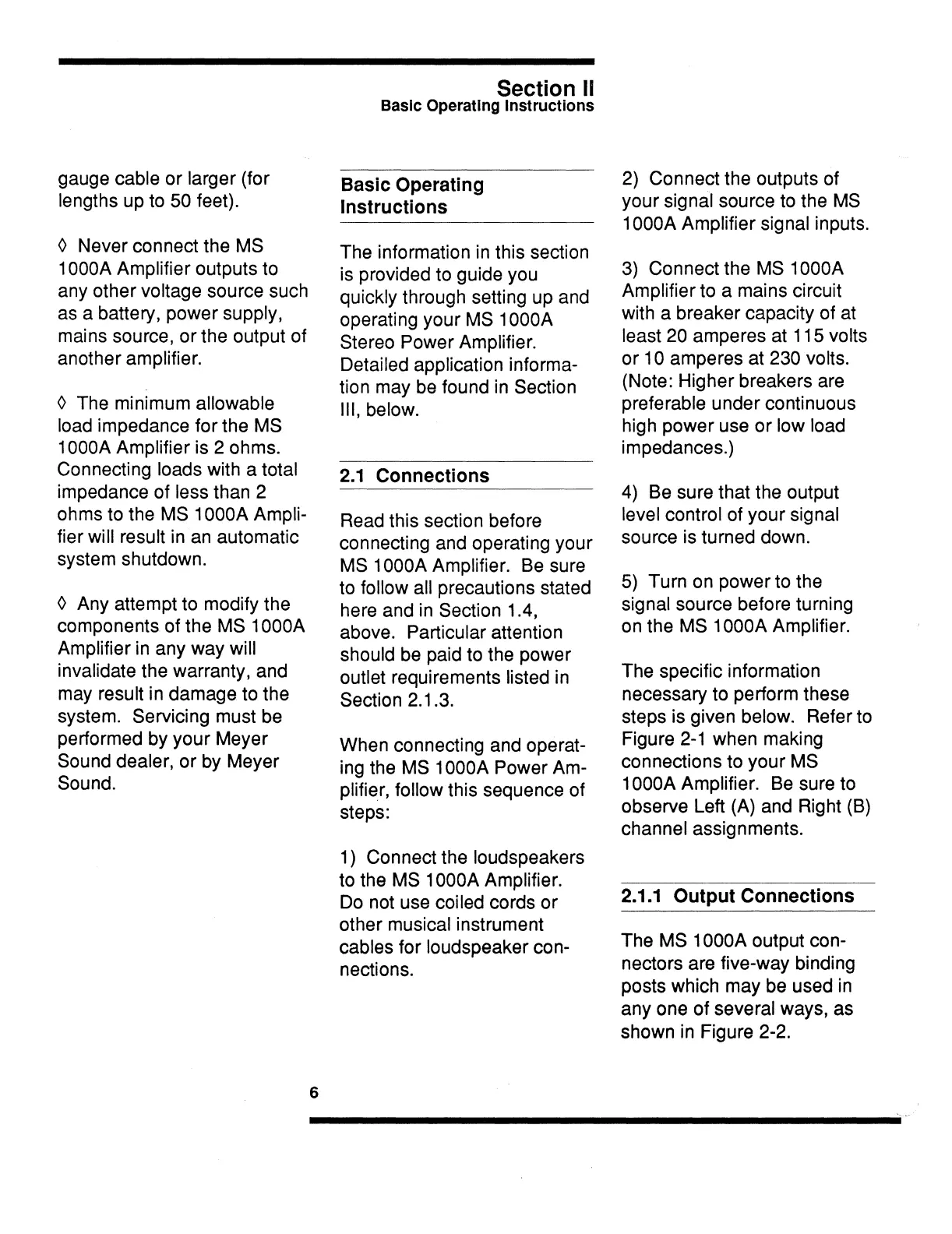 Meyer Sound MS 1000A - Section II. Basic Operating Instructions; 2.1 Connections; 2.1.1 Output Connections