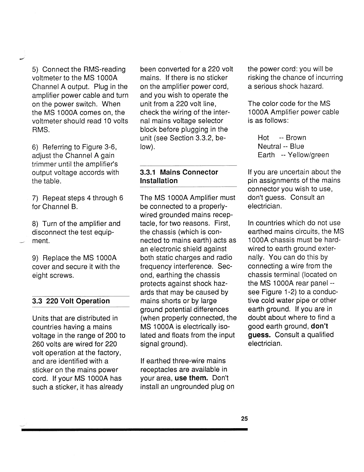 Meyer Sound MS 1000A - 220 Volt Operation; Mains Connector Installation