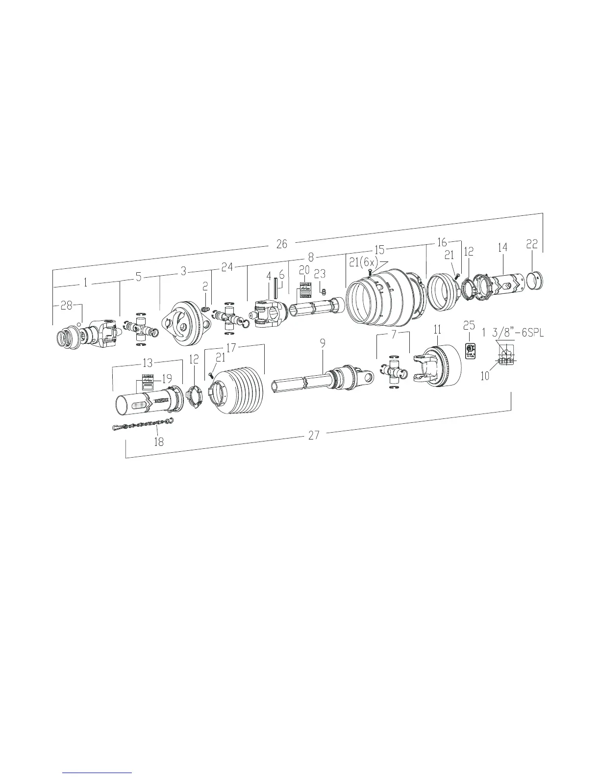 1000 RPM-21 SPLINE / 1-3/8” YOKE WWE2480 (80 DEGREE C.V.)
