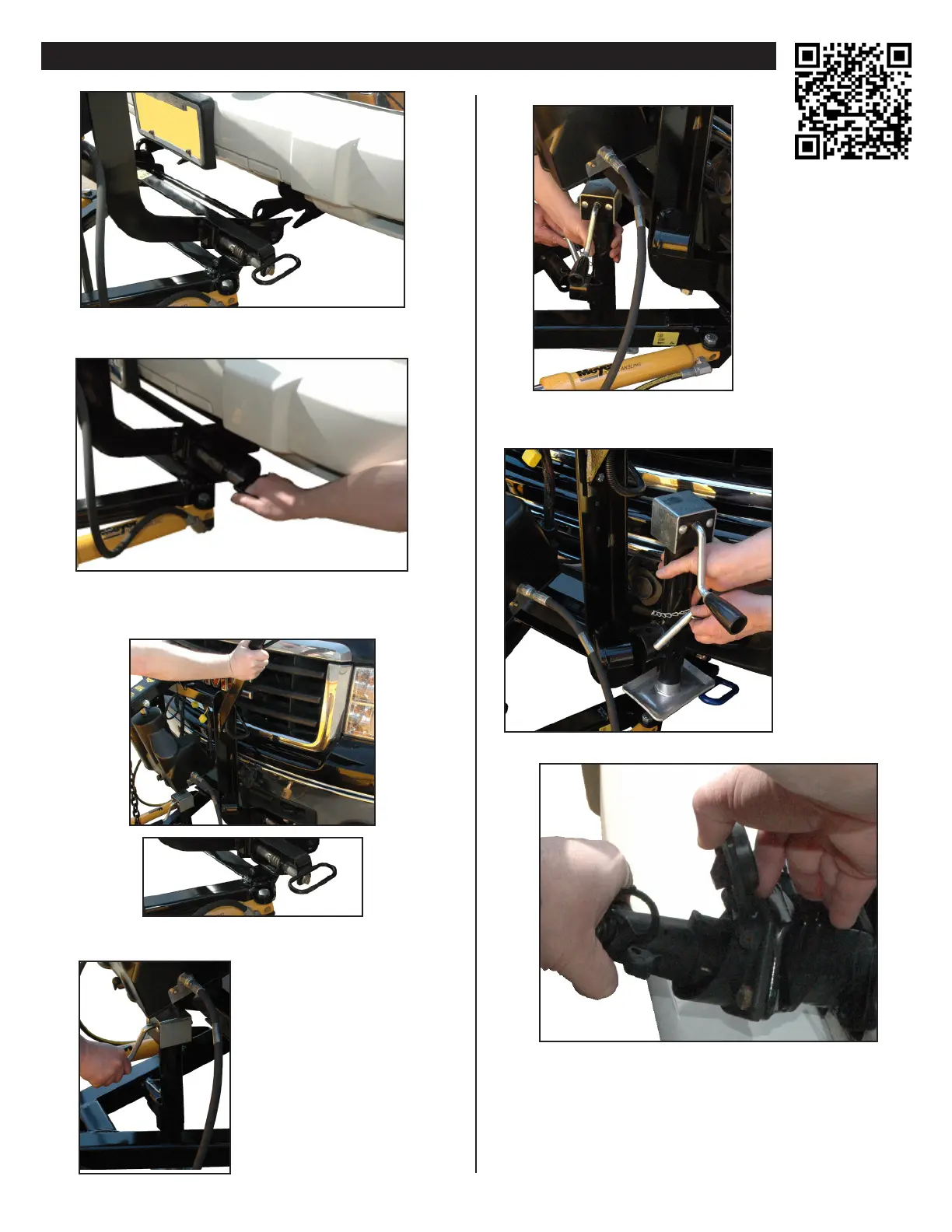 C. Push back on lift frame until pins spring thru mount on vehicle.