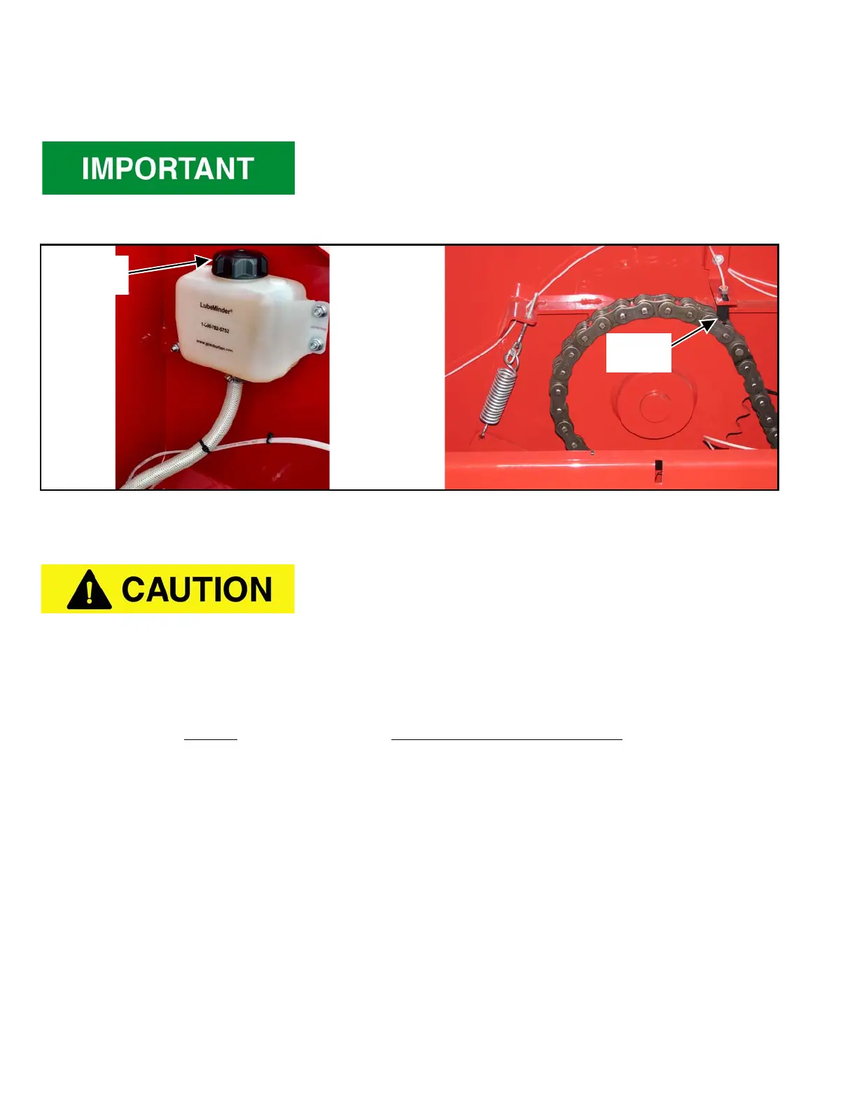 There are four roller chain drives located at the front of the spreader. Regularly check that all tensioning springs are in