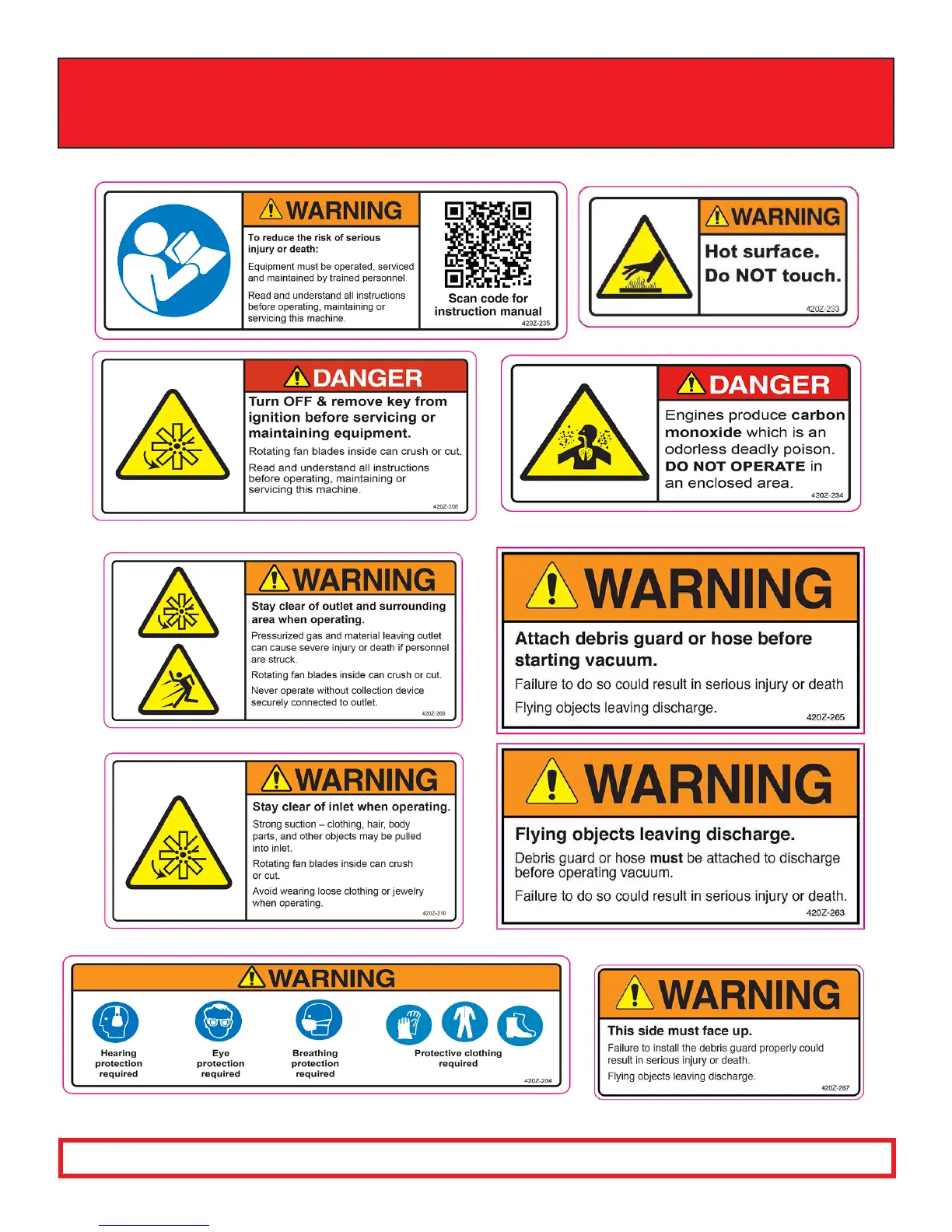Locate all of the safety labels on your equipment and know their meaning before operating your